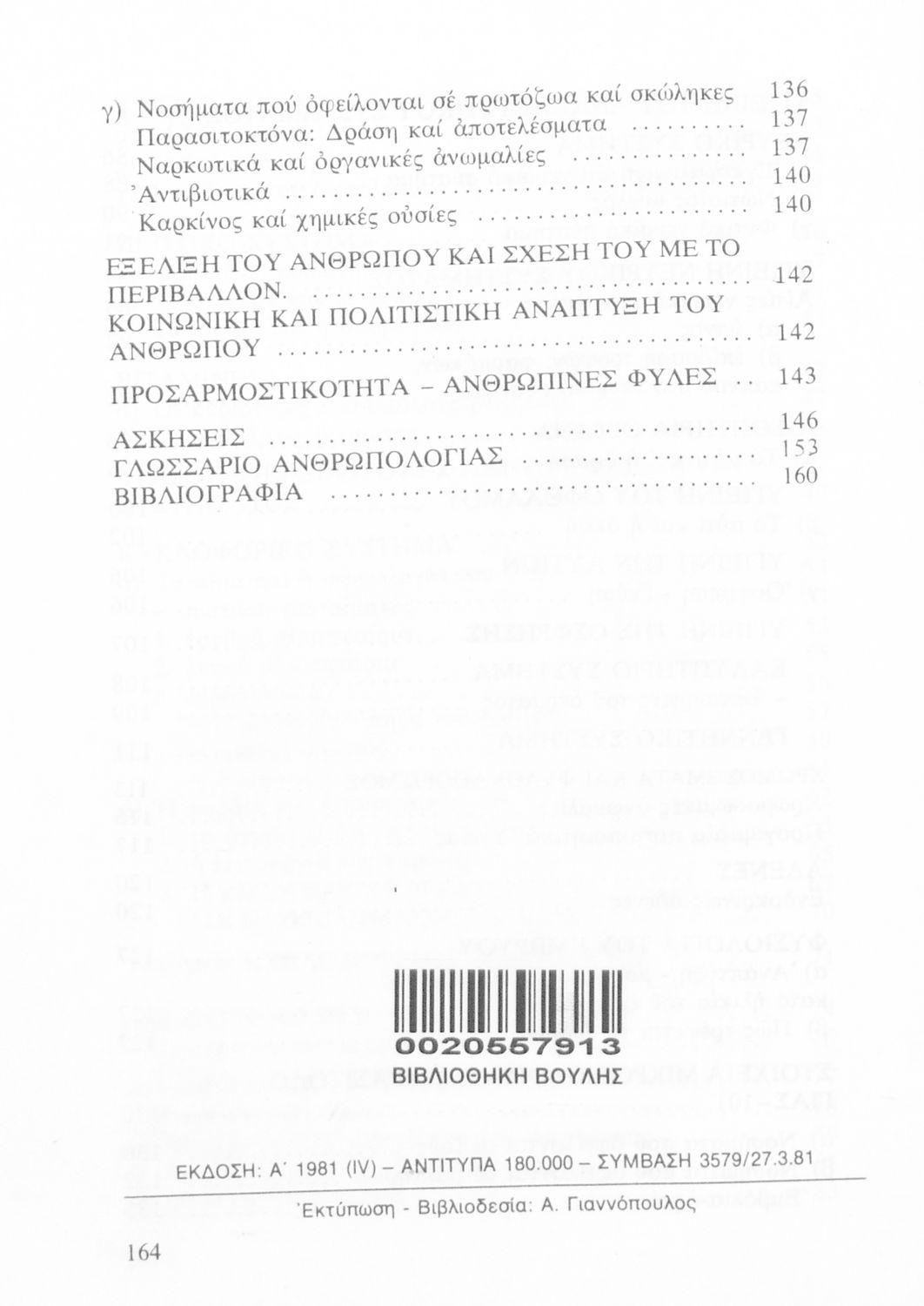 Σχολικό εγχειρίδιο Ανθρωπολογίας Β΄ Γυμνασίου που εστιάζει στην κατασκευή, ανάπτυξη και λειτουργία του ανθρώπινου οργανισμού και τη σχέση του ανθρώπου με το φυσικό περιβάλλον. Περιέχει και αναφορά στις ...