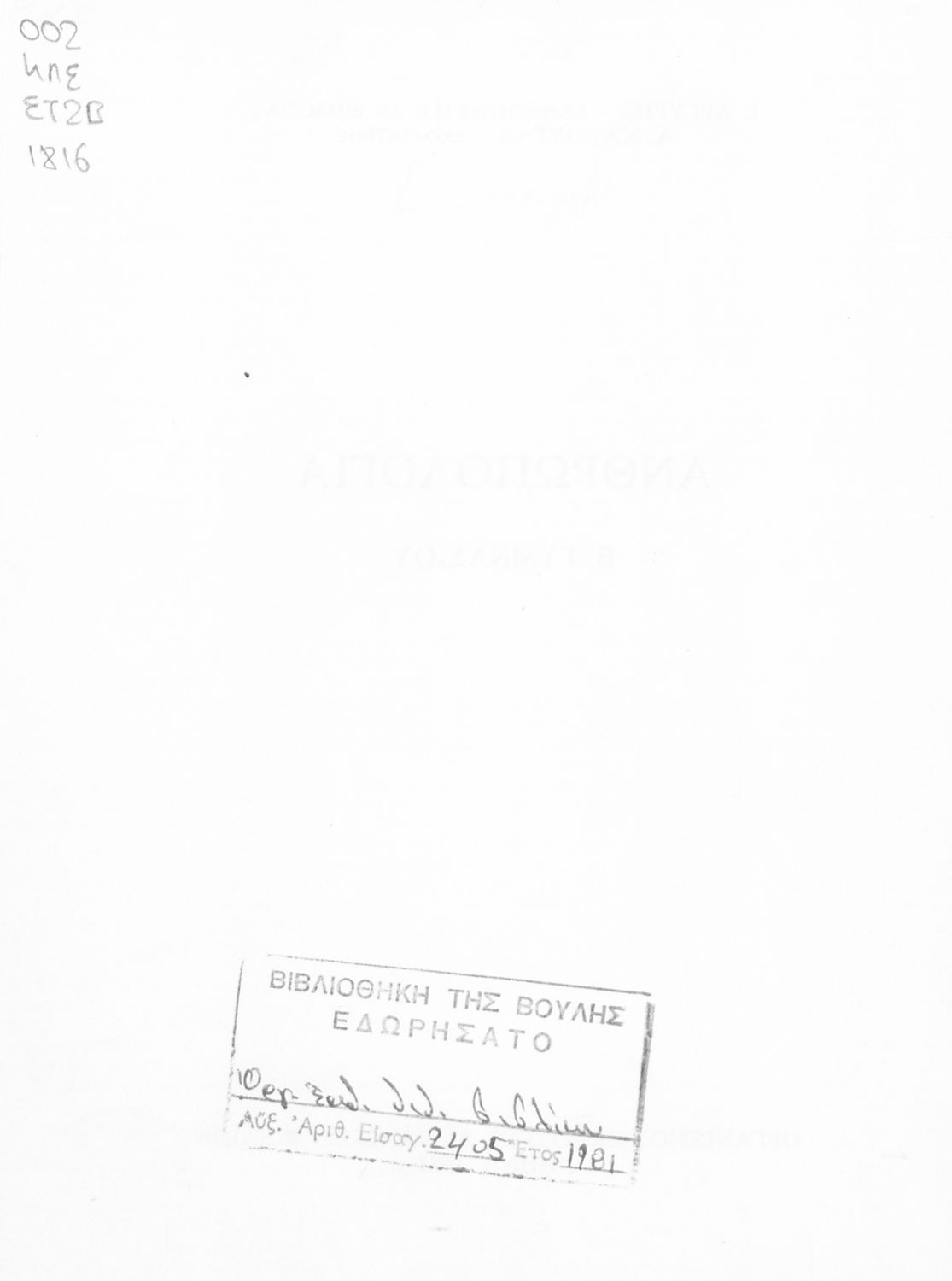 Εντοπισμός πρωτοτύπου: Βιβλιοθήκη της Βουλής των Ελλήνων Κωδικός βιβλιοθήκης: 20557913 |