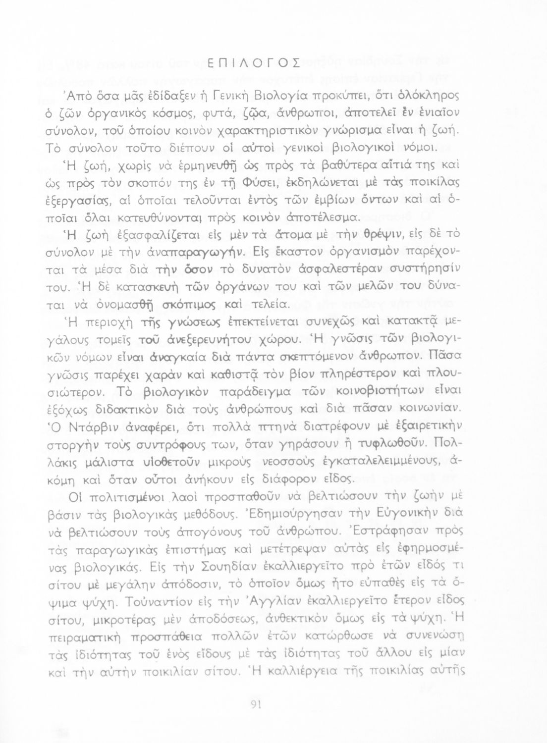 Σχολικό εγχειρίδιο Βιολογίας Δ΄ Γυμνασίου που εστιάζει στις συνθήκες γέννησης, μεταβολής και θανάτου των έμβιων οργανισμών. Ο συγγραφέας ήταν καθηγητής της γενικής Βιολογίας στο Πανεπιστήμιο Αθηνών.