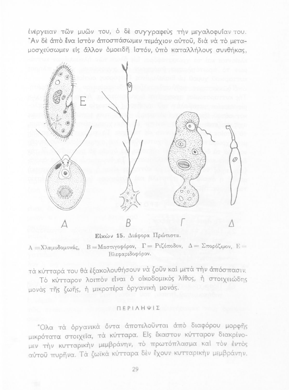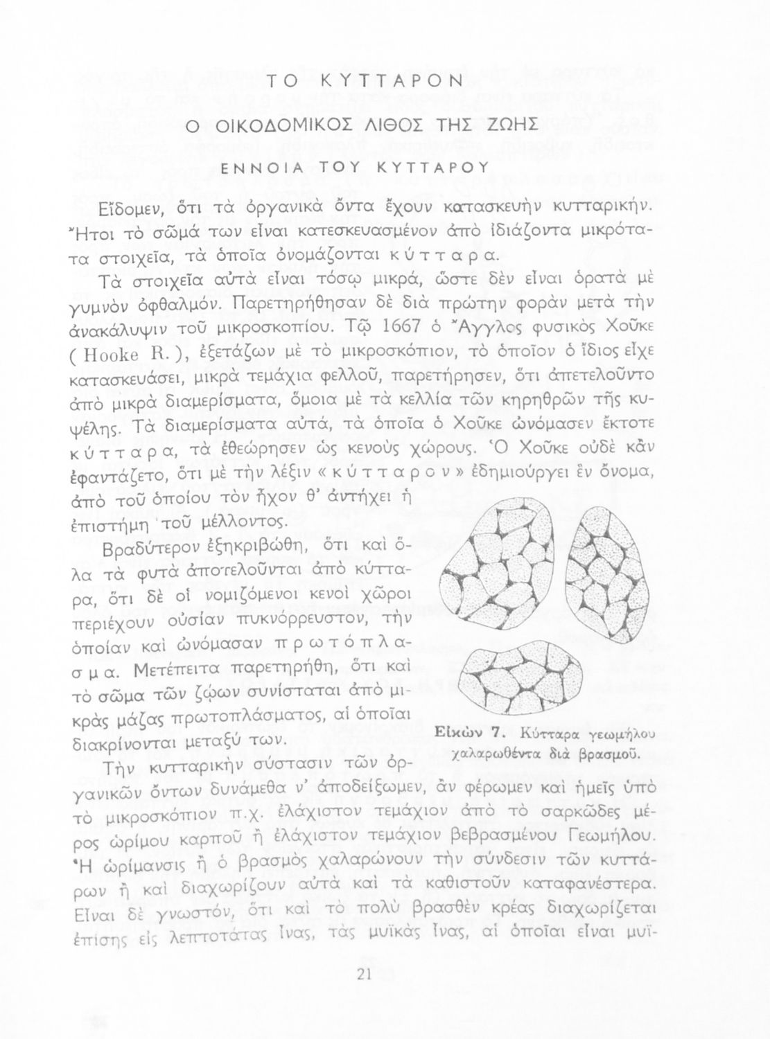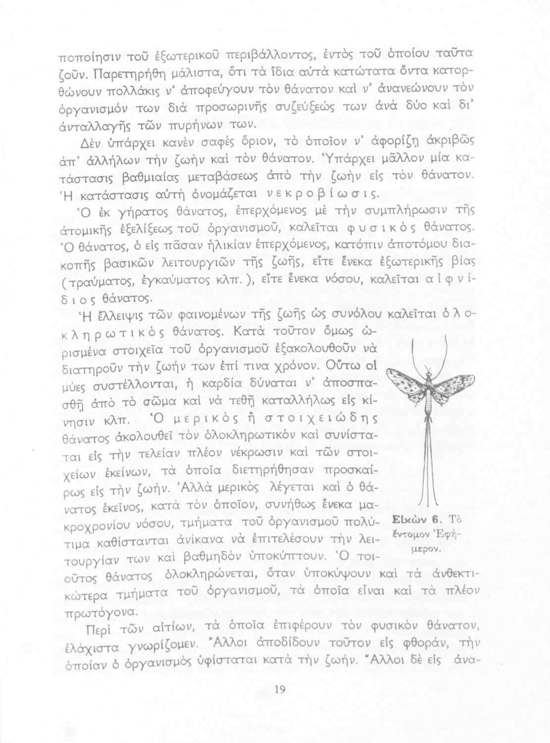 Σχολικό εγχειρίδιο Βιολογίας για τους μαθητές της Γ' Γυμνασίου. Περιέχει μια γενική επισκόπηση της Βιολογίας αρχίζοντας με τα βασικά δομικά στοιχεία κάθε οργανισμού, τα ανόργανα και οργανικά σώματα και τα γνωρίσματά τους, τις συνθήκες στις οποίες αναπτύσσονται και εξελίσσονται οι μορφές ζωής, όπως θερμότητα, πίεση, υγρασία. Τέλος το βιβλίο ασχολείται με ζητήματα κληρονομικότητας και την έννοια της εξέλιξης.