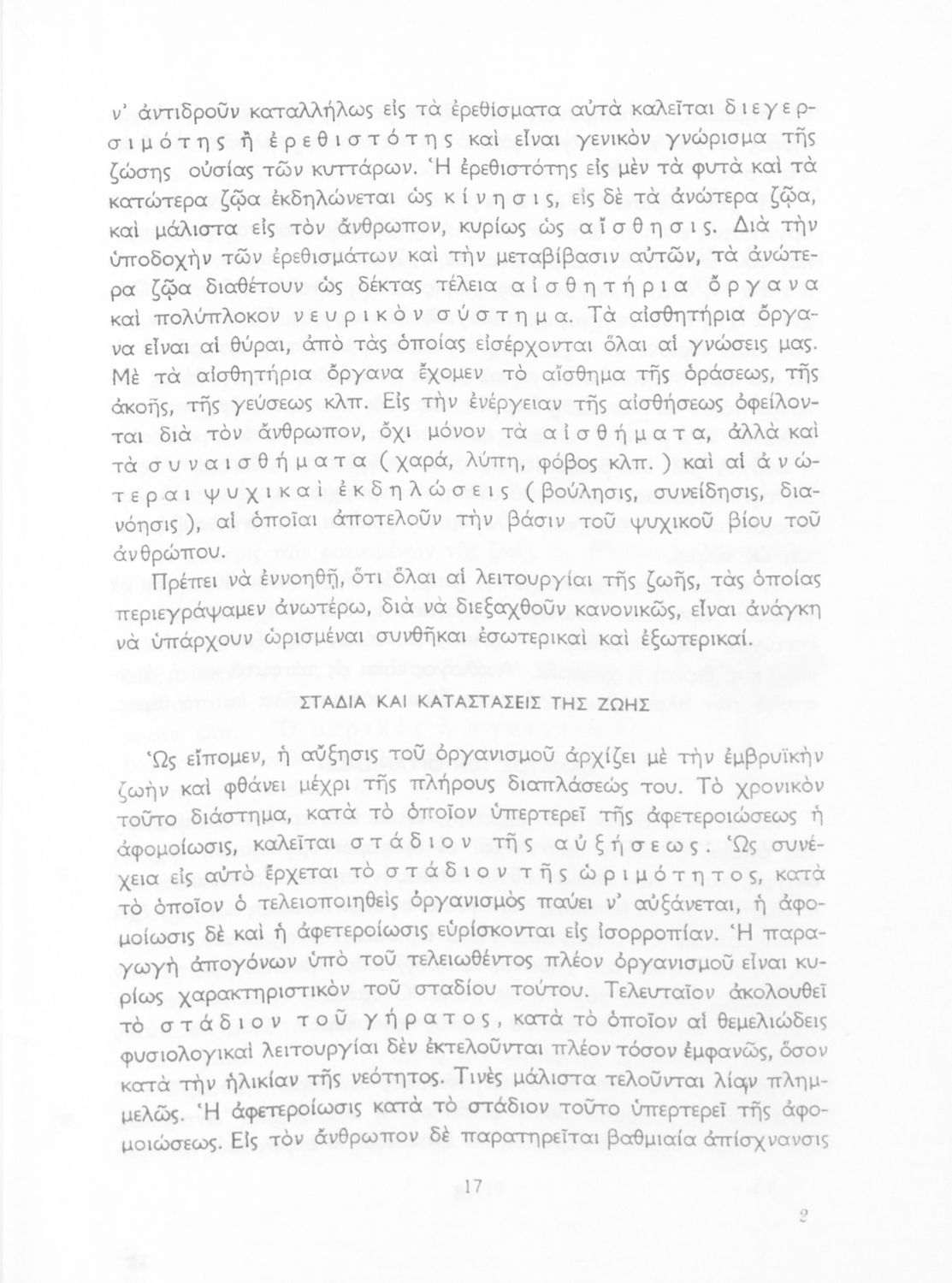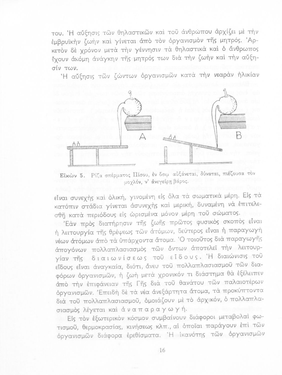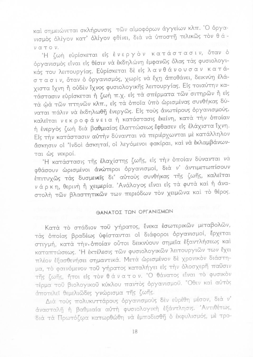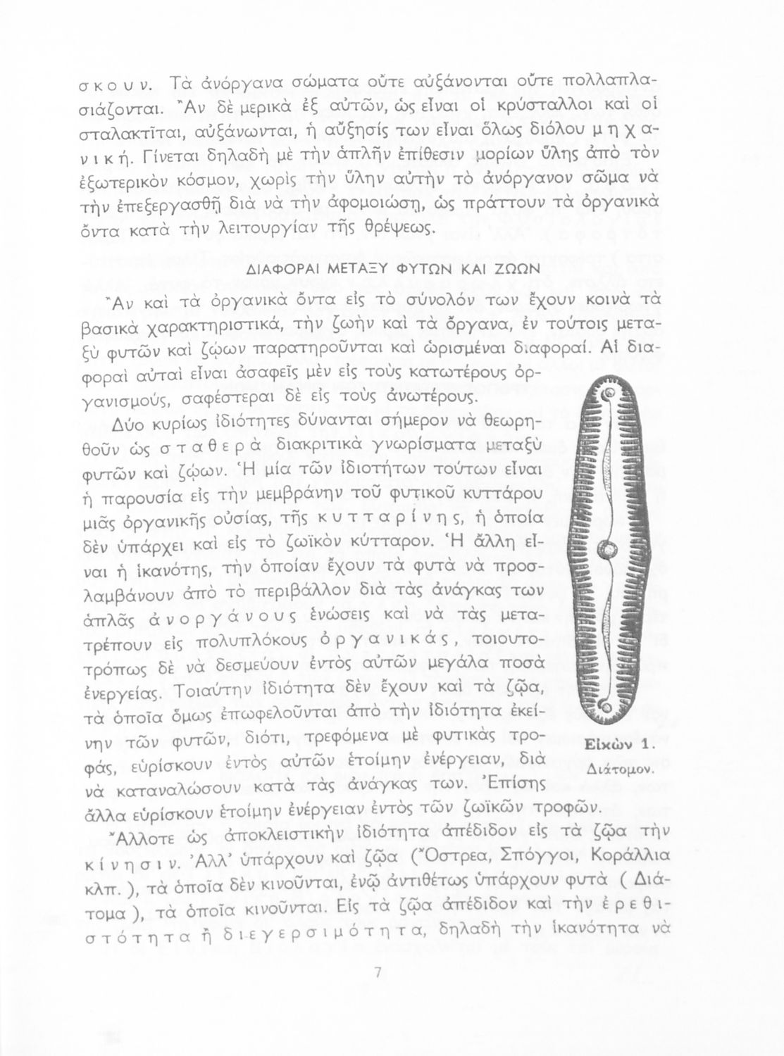 Σχολικό εγχειρίδιο Βιολογίας για τους μαθητές της Γ' Γυμνασίου. Περιέχει μια γενική επισκόπηση της Βιολογίας αρχίζοντας με τα βασικά δομικά στοιχεία κάθε οργανισμού, τα ανόργανα και οργανικά σώματα και τα γνωρίσματά τους, τις συνθήκες στις οποίες αναπτύσσονται και εξελίσσονται οι μορφές ζωής, όπως θερμότητα, πίεση, υγρασία. Τέλος το βιβλίο ασχολείται με ζητήματα κληρονομικότητας και την έννοια της εξέλιξης.
