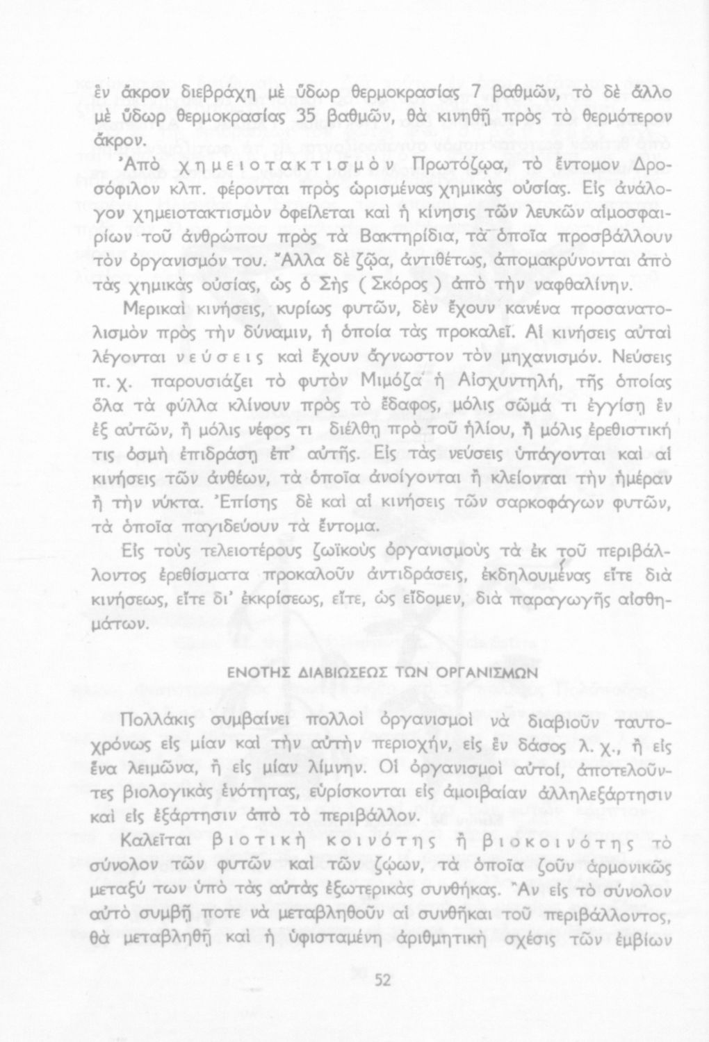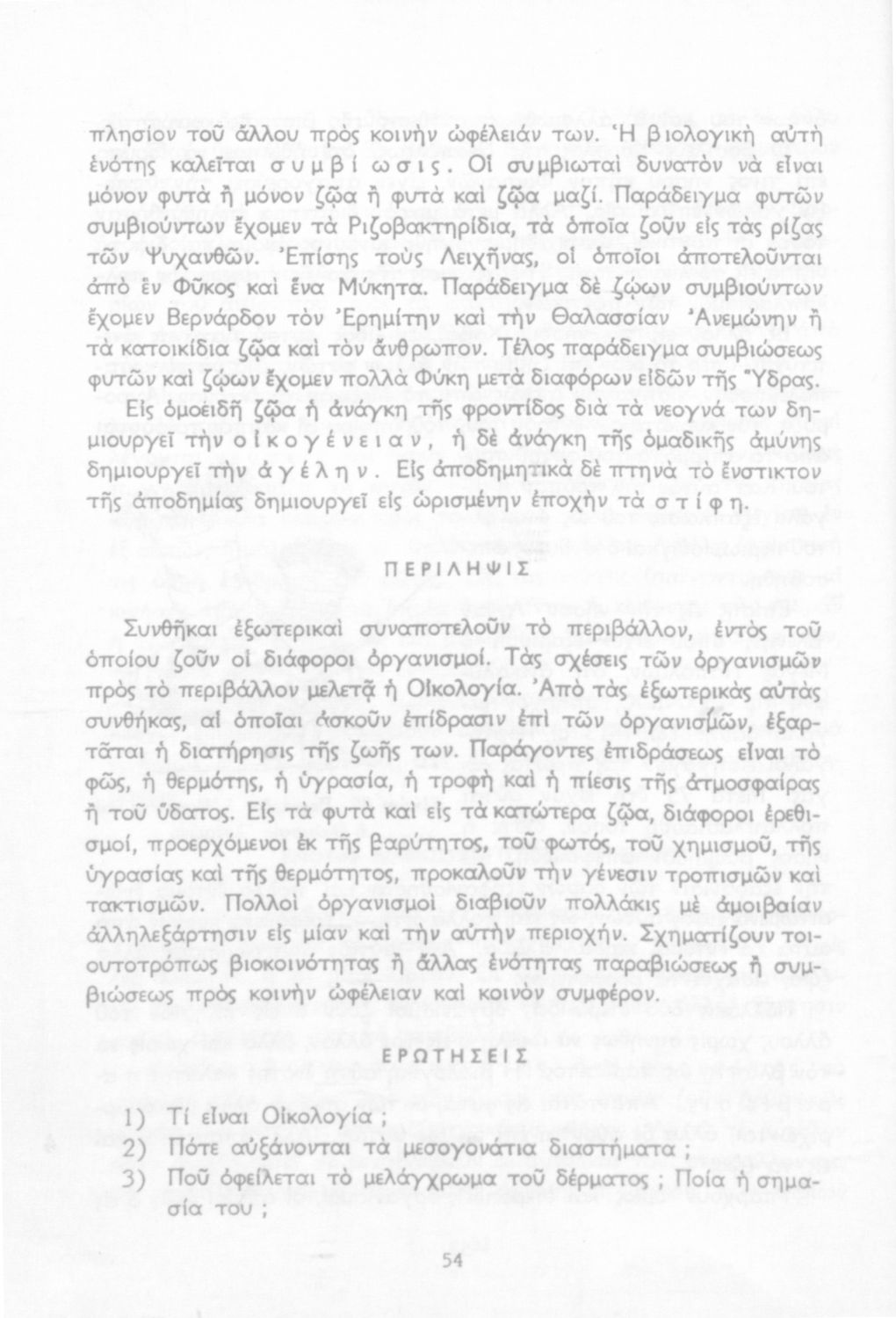 Σχολικό εγχειρίδιο Βιολογίας για τους μαθητές της Γ΄ Γυμνασίου. Περιέχει μια γενική επισκόπηση της Βιολογίας αρχίζοντας με τα βασικά δομικά στοιχεία κάθε οργανισμού, τα ανόργανα και οργανικά σώματα και τα γνωρίσματά τους, τις συνθήκες στις οποίες αναπτύσσονται και εξελίσσονται οι μορφές ζωής, όπως θερμότητα, πίεση, υγρασία. Τέλος το βιβλίο ασχολείται με ζητήματα κληρονομικότητας και την έννοια της εξέλιξης.
