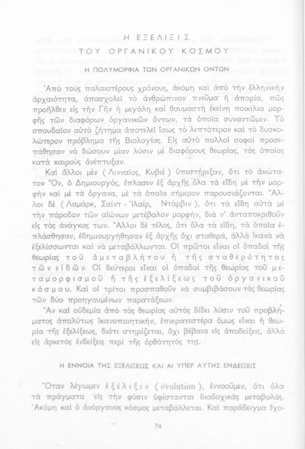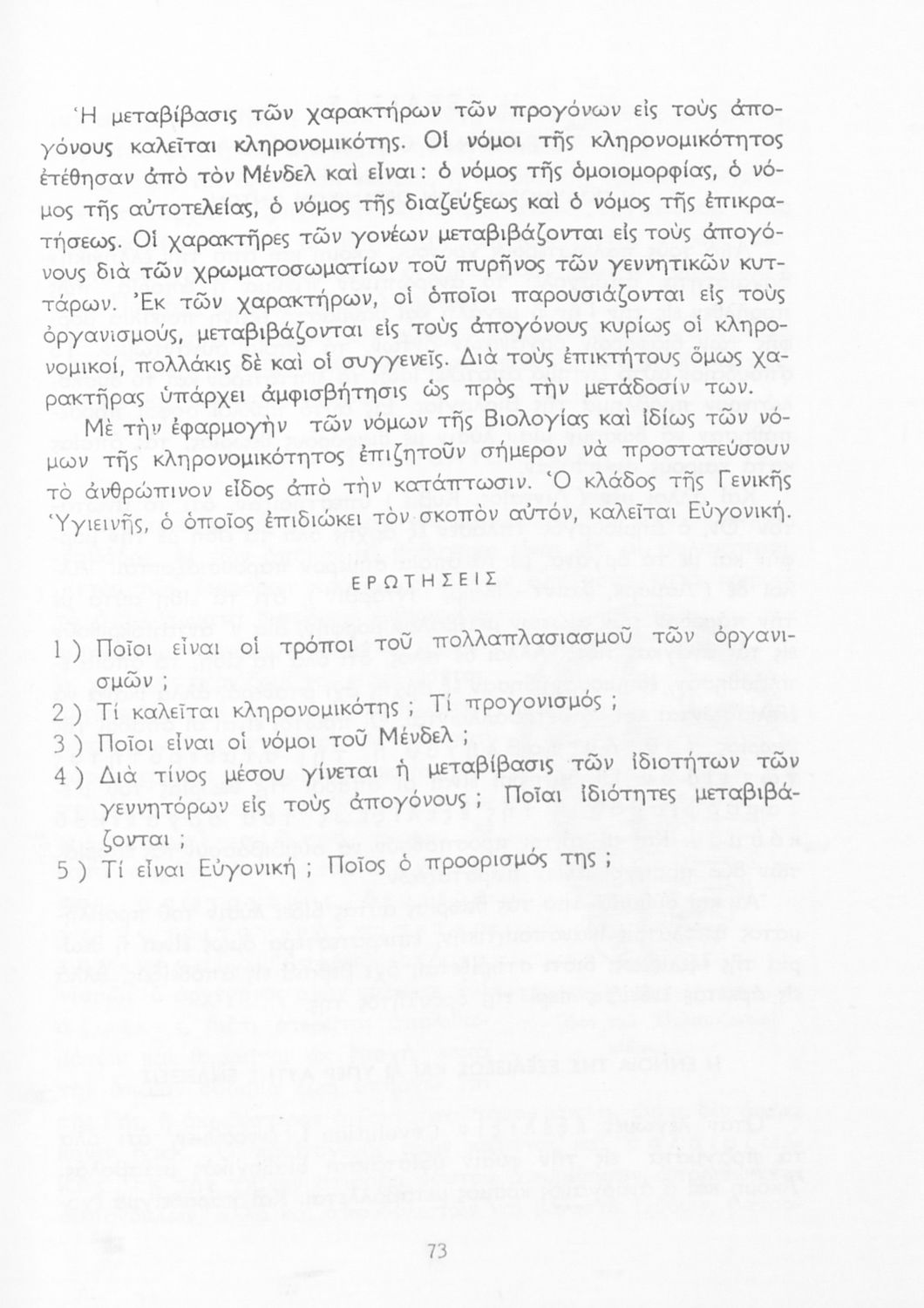 Σχολικό εγχειρίδιο Βιολογίας για τους μαθητές της Γ΄ Γυμνασίου. Περιέχει μια γενική επισκόπηση της Βιολογίας αρχίζοντας με τα βασικά δομικά στοιχεία κάθε οργανισμού, τα ανόργανα και οργανικά σώματα και τα γνωρίσματά τους, τις συνθήκες στις οποίες αναπτύσσονται και εξελίσσονται οι μορφές ζωής, όπως θερμότητα, πίεση, υγρασία. Τέλος το βιβλίο ασχολείται με ζητήματα κληρονομικότητας και την έννοια της εξέλιξης.