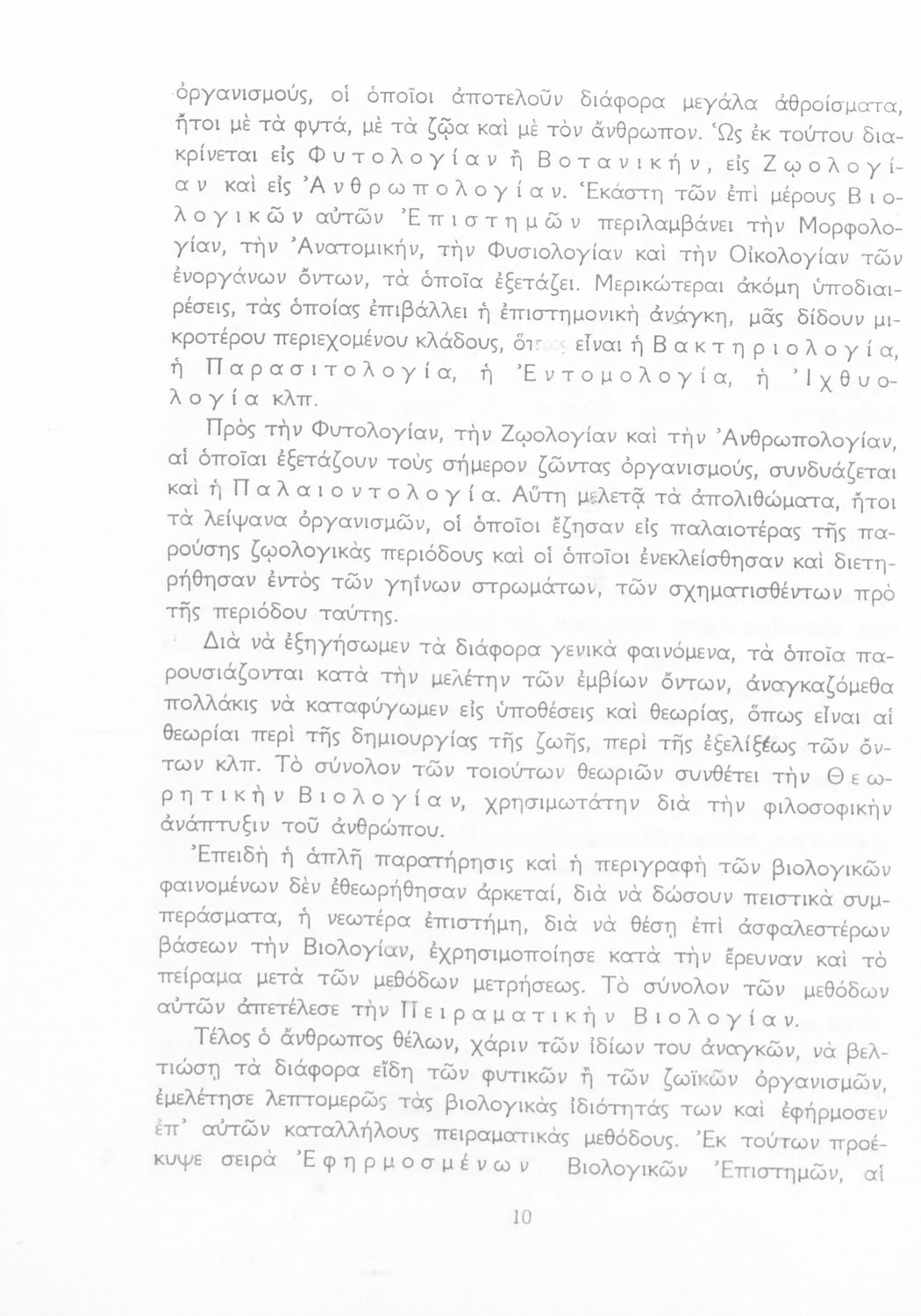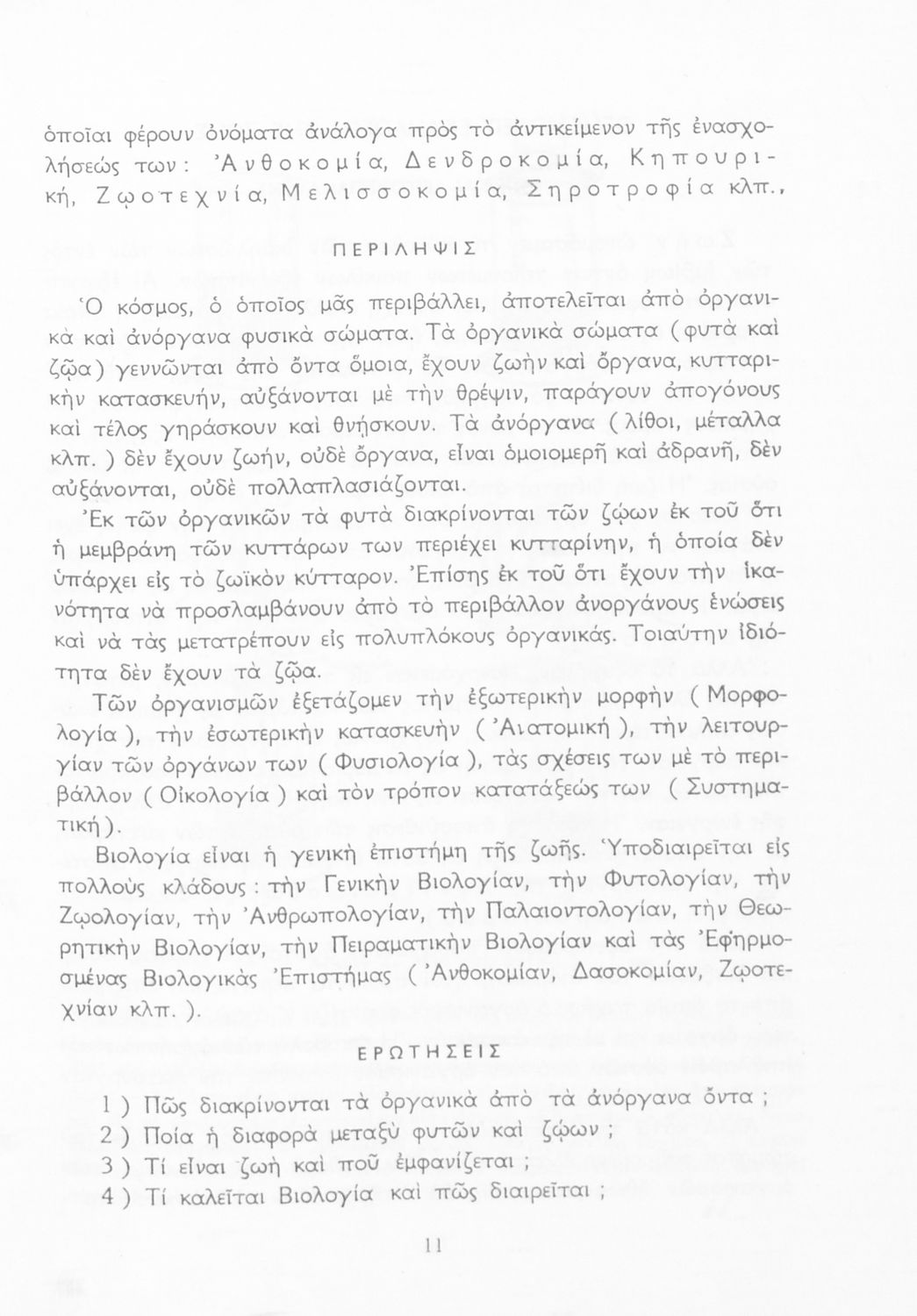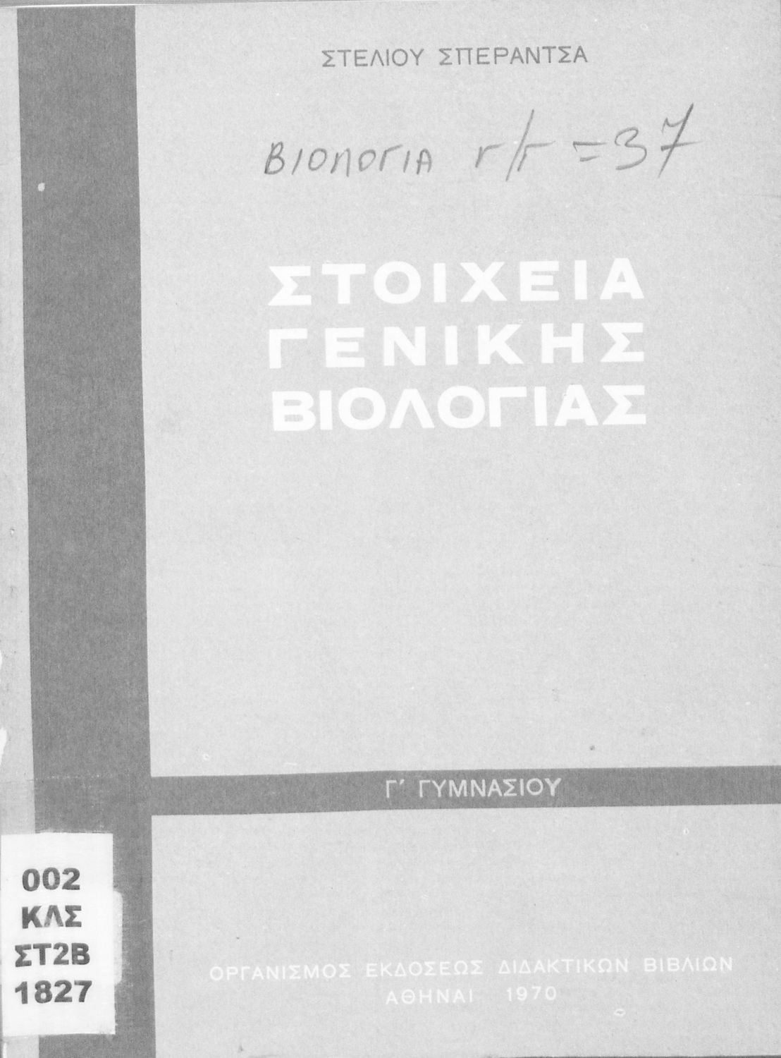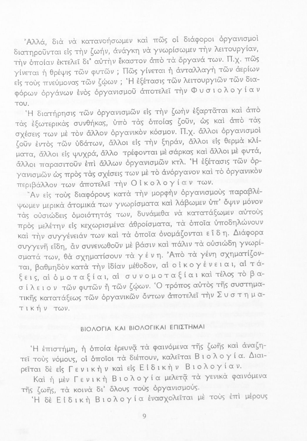 Σχολικό εγχειρίδιο Βιολογίας για τους μαθητές της Γ΄ Γυμνασίου. Περιέχει μια γενική επισκόπηση της Βιολογίας αρχίζοντας με τα βασικά δομικά στοιχεία κάθε οργανισμού, τα ανόργανα και οργανικά σώματα και τα γνωρίσματά τους, τις συνθήκες στις οποίες αναπτύσσονται και εξελίσσονται οι μορφές ζωής, όπως θερμότητα, πίεση, υγρασία. Τέλος το βιβλίο ασχολείται με ζητήματα κληρονομικότητας και την έννοια της εξέλιξης.
