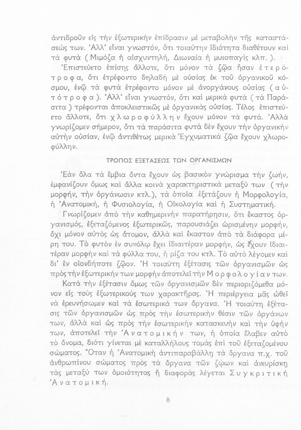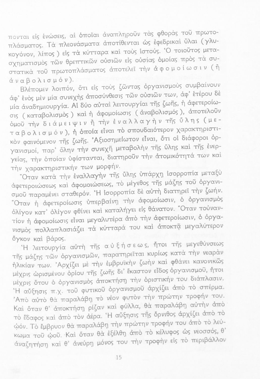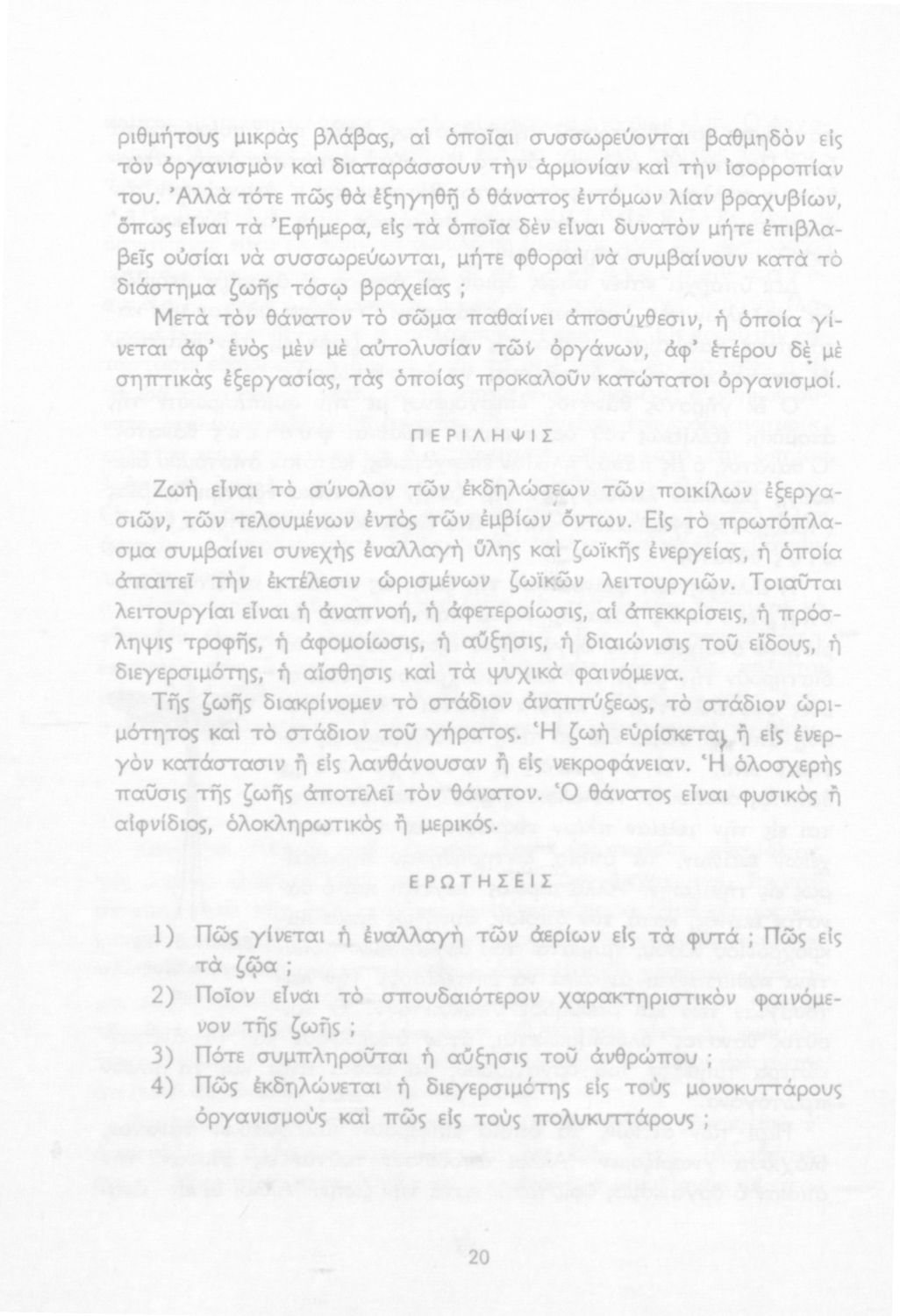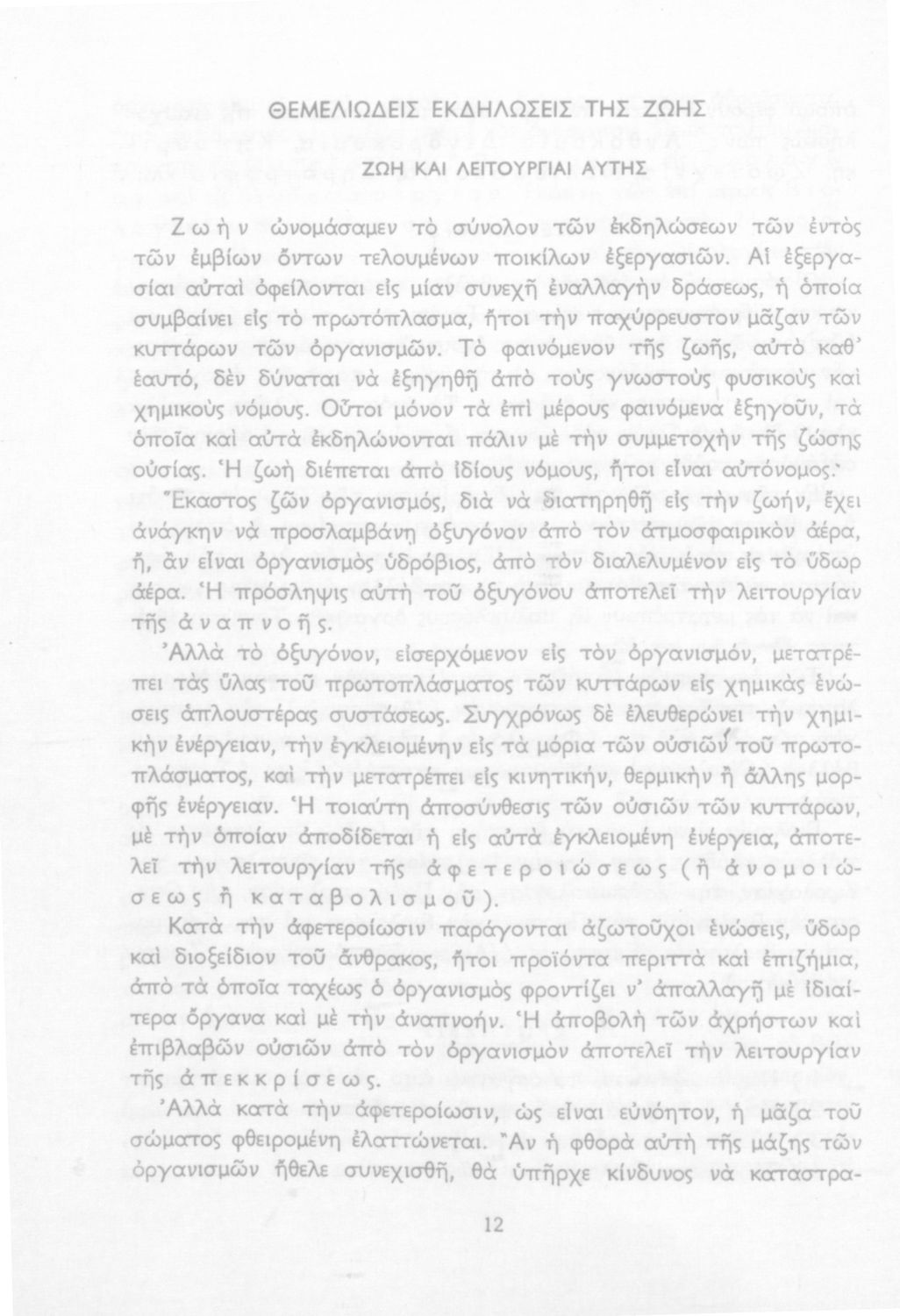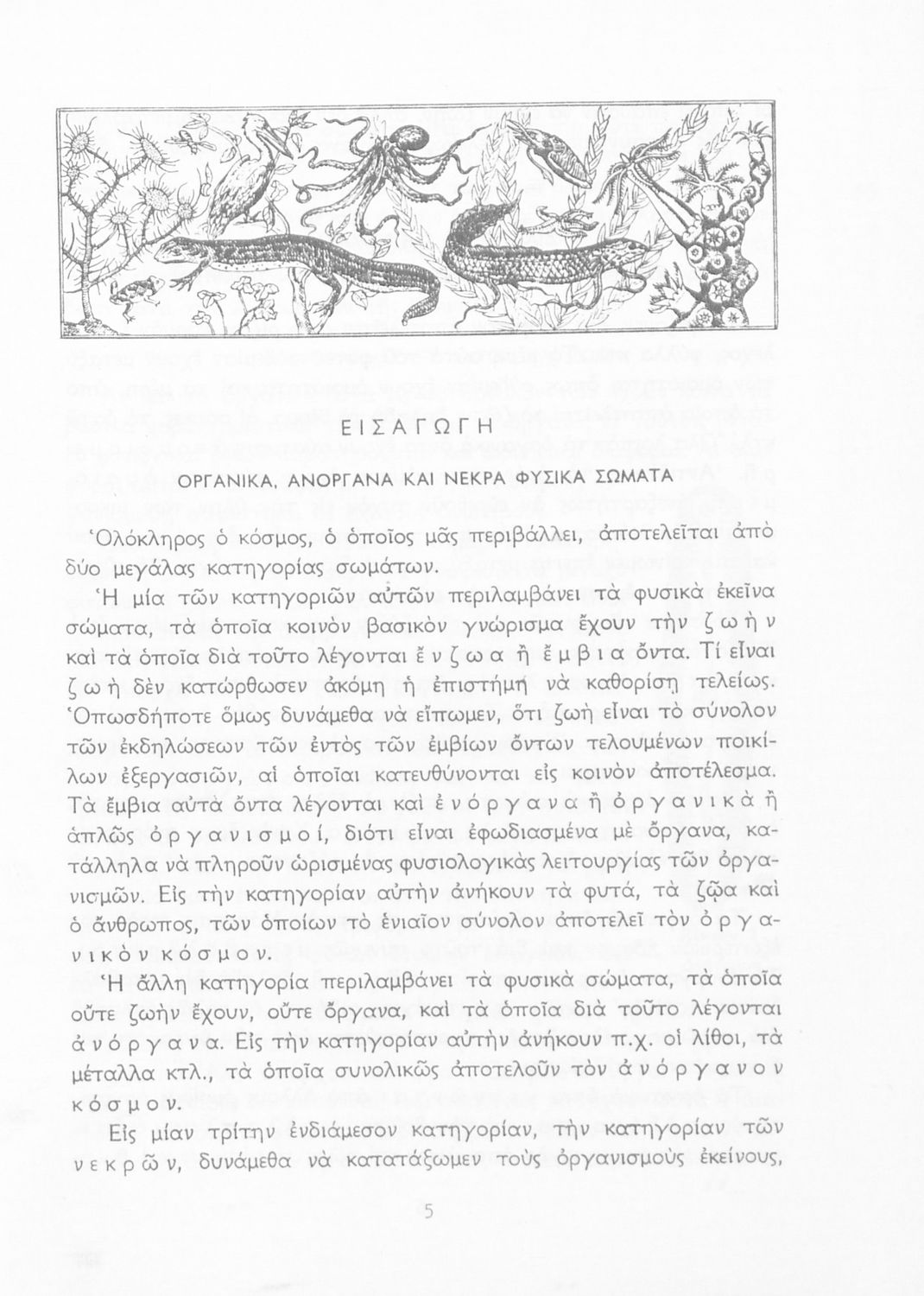 Σχολικό εγχειρίδιο Βιολογίας για τους μαθητές της Γ΄ Γυμνασίου. Περιέχει μια γενική επισκόπηση της Βιολογίας αρχίζοντας με τα βασικά δομικά στοιχεία κάθε οργανισμού, τα ανόργανα και οργανικά σώματα και τα γνωρίσματά τους, τις συνθήκες στις οποίες αναπτύσσονται και εξελίσσονται οι μορφές ζωής, όπως θερμότητα, πίεση, υγρασία. Τέλος το βιβλίο ασχολείται με ζητήματα κληρονομικότητας και την έννοια της εξέλιξης.