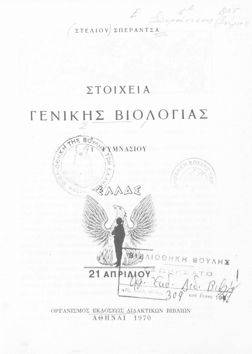 Εκδότης: Οργανισμός Εκδόσεως Διδακτικών Βιβλίων Έτος έκδοσης: 1970 Τόπος έκδοσης: Αθήνα Έκδοση: 10η Υπουργική απόφαση / Σύμβαση: 2031/11-4-1970 Έτος έγκρισης: 1970 |