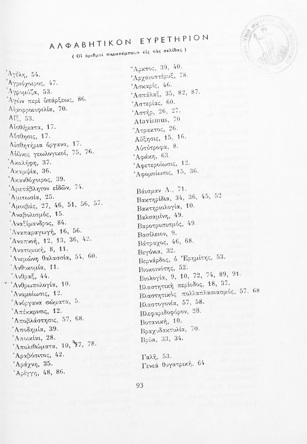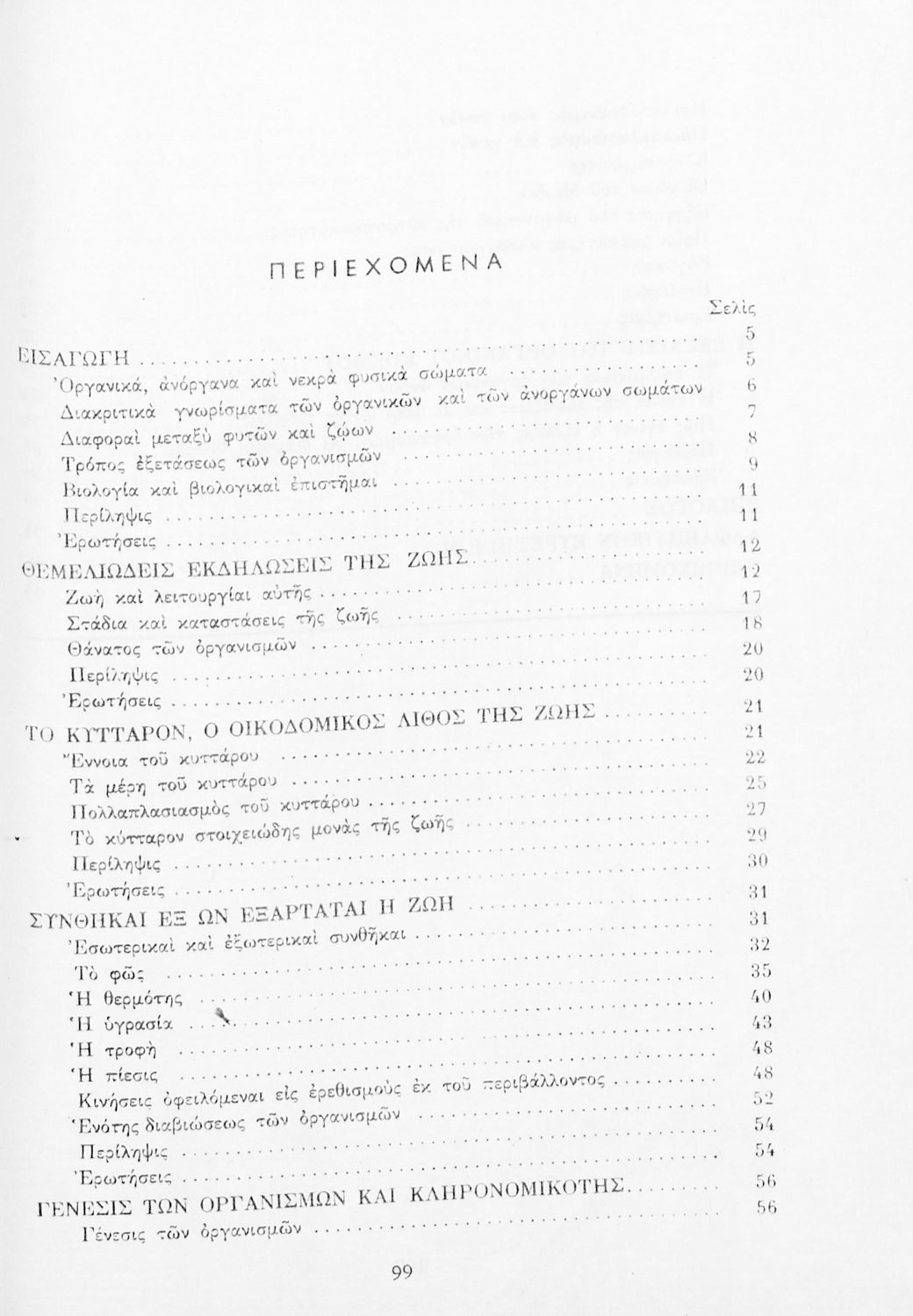 Σχολικό εγχειρίδιο Βιολογίας Δ΄ Γυμνασίου που εστιάζει στις συνθήκες γέννησης, μεταβολής και θανάτου των έμβιων οργανισμών. Ο συγγραφέας ήταν καθηγητής της γενικής Βιολογίας στο Πανεπιστήμιο Αθηνών.