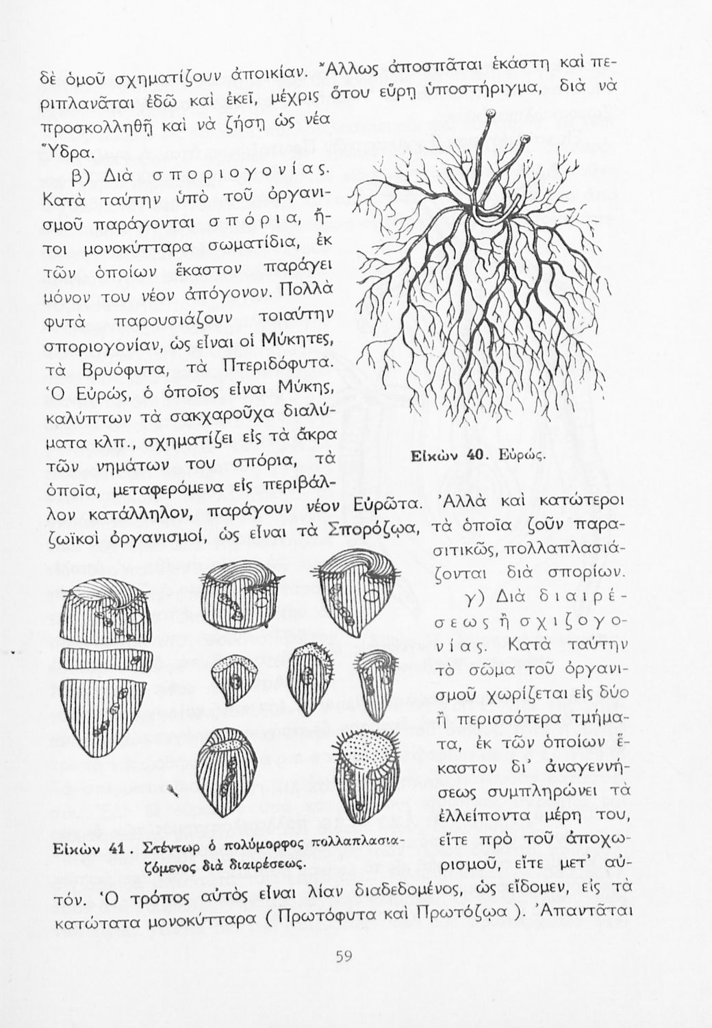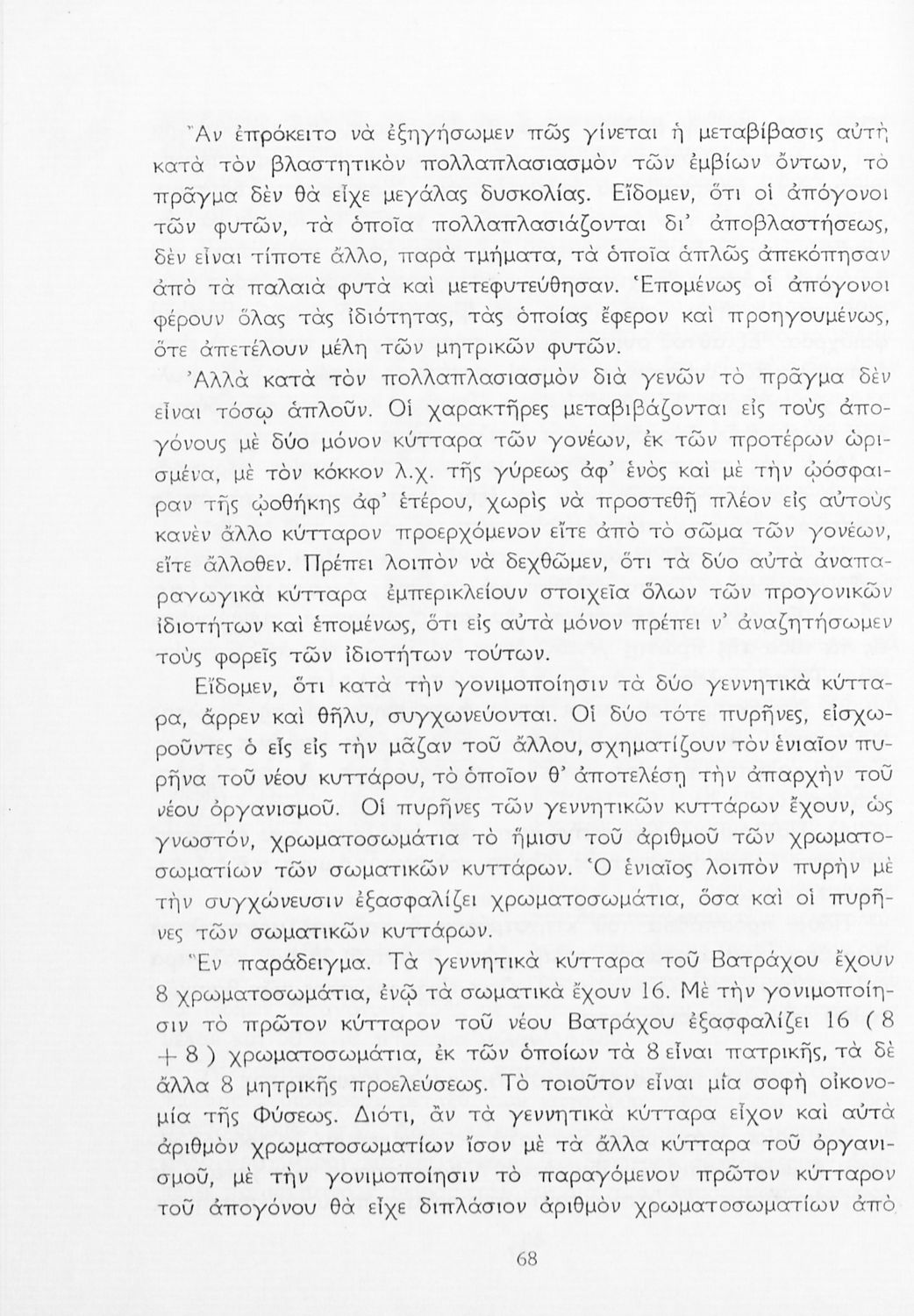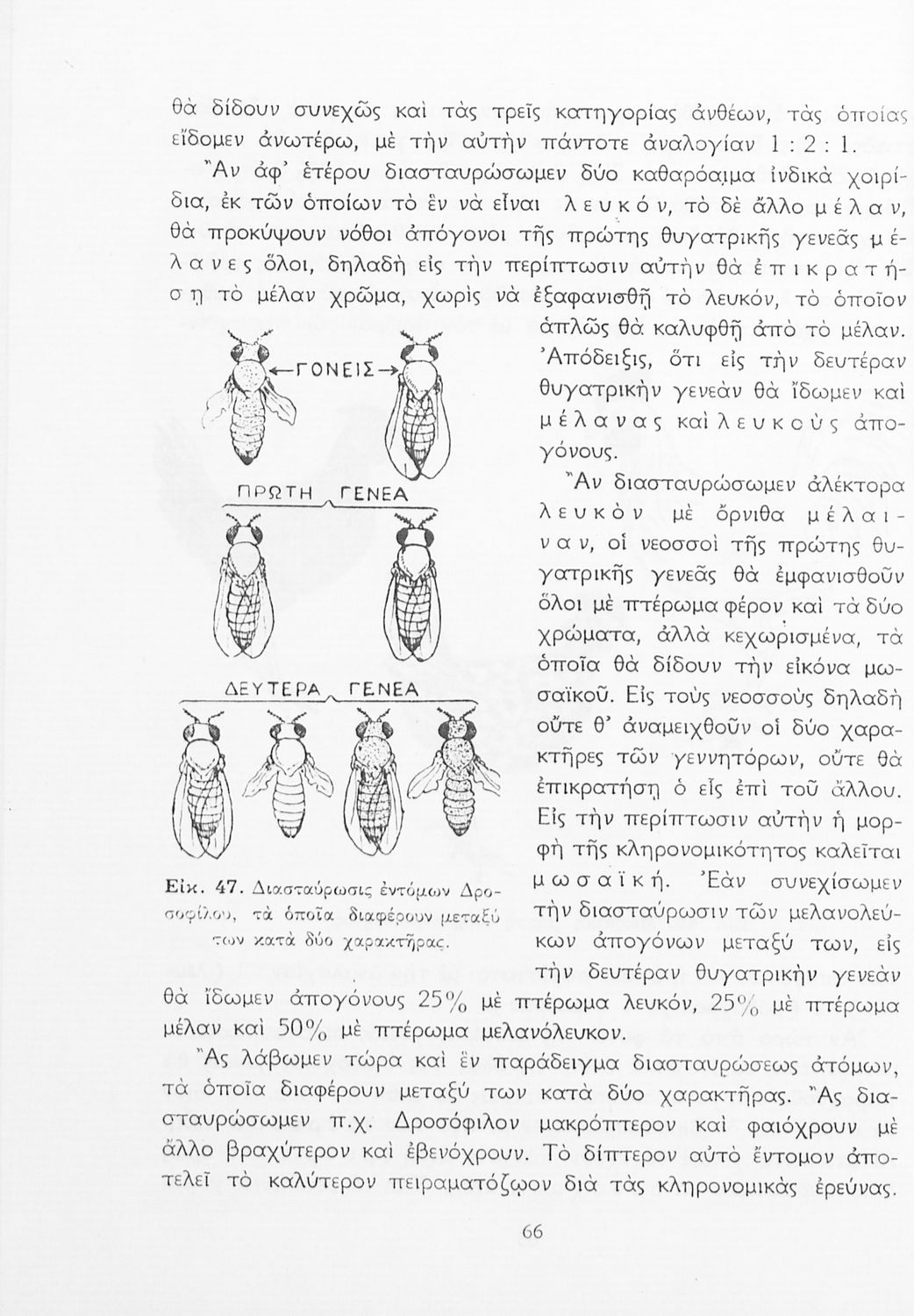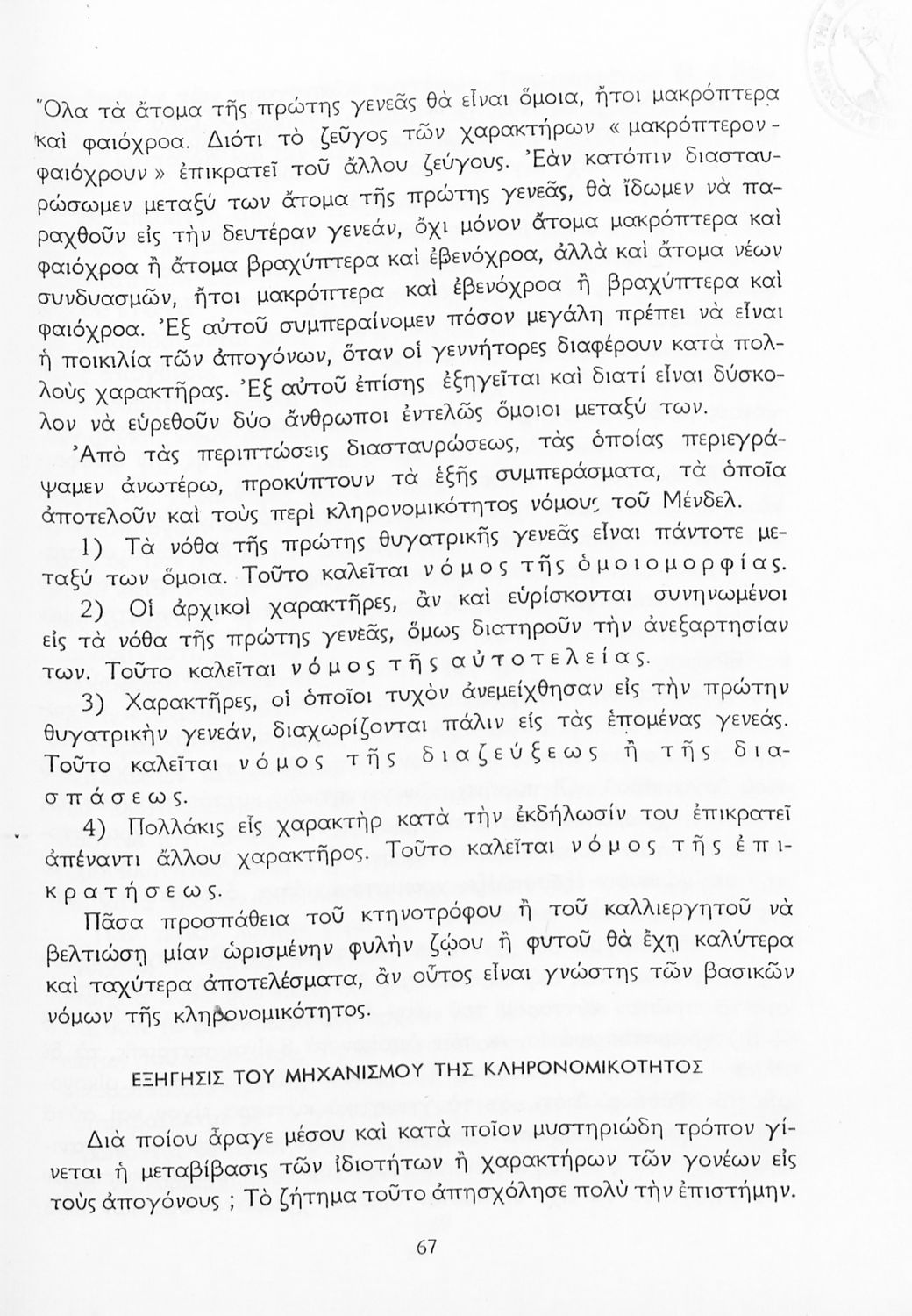 Βαθμίδα εκπαίδευσης: Δευτεροβάθμια Τάξη: Γ' Γυμνασίου Μάθημα: Βιολογία Γλώσσα: Απλή καθαρεύουσα Παρουσίαση περιεχομένου: Το βιβλίο προσφέρει μια γενική επισκόπηση της επιστήμης της βιολογίας. Αρχίζοντας με τα βασικά δομικά στοιχεία κάθε οργανισμού, ανόργανα και οργανικά σώματα και τα γνωρίσματά τους. Τα μέρη του κυττάρου, συνθήκες από τις οποίες εξαρτάται οι μορφές ζωής, όπως θερμότητα, πίεση, υγρασία. Τέλος το βιβλίο ασχολείται με ζητήματα κληρονομικότητας και την έννοια της εξέλιξης. |