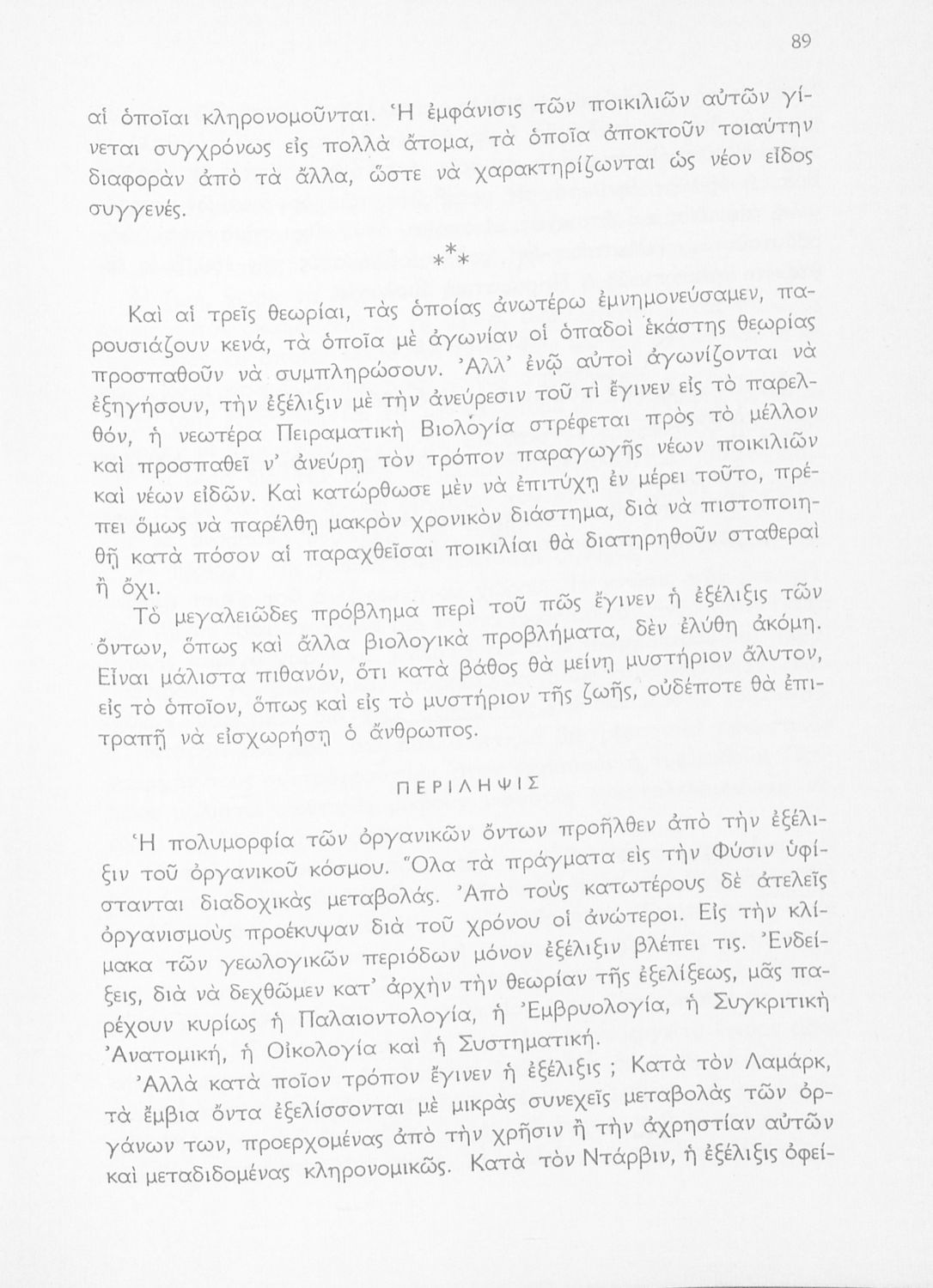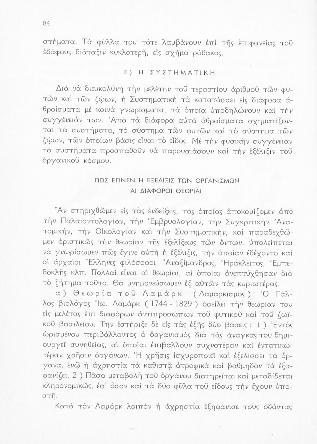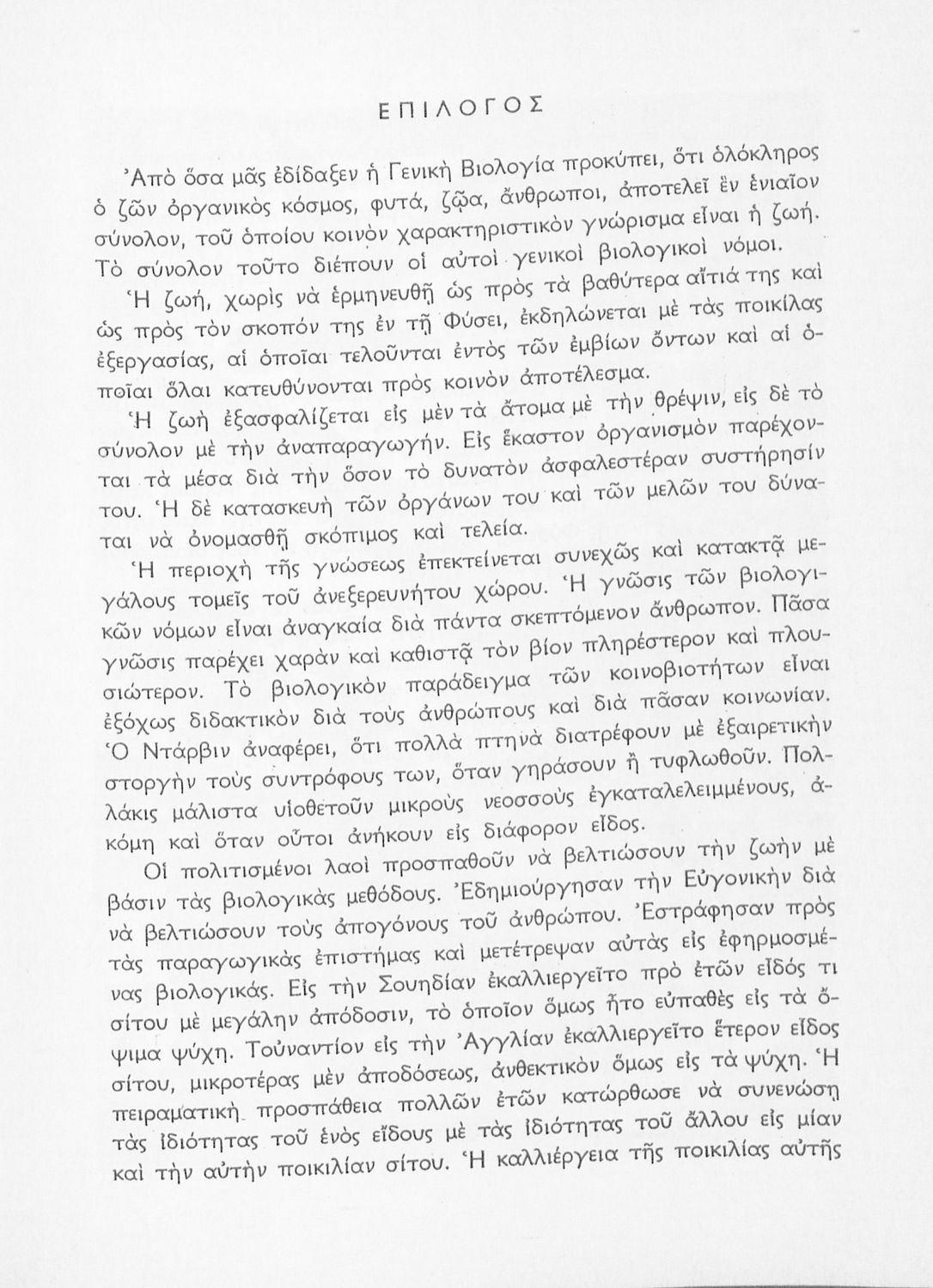 Σχολικό εγχειρίδιο Βιολογίας Δ΄ Γυμνασίου που εστιάζει στις συνθήκες γέννησης, μεταβολής και θανάτου των έμβιων οργανισμών. Ο συγγραφέας ήταν καθηγητής της γενικής Βιολογίας στο Πανεπιστήμιο Αθηνών.