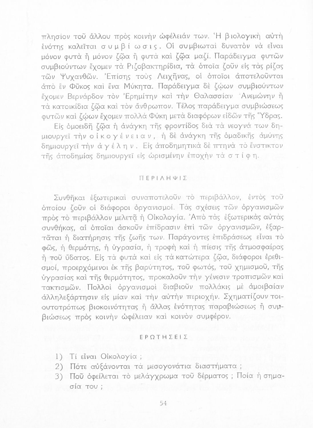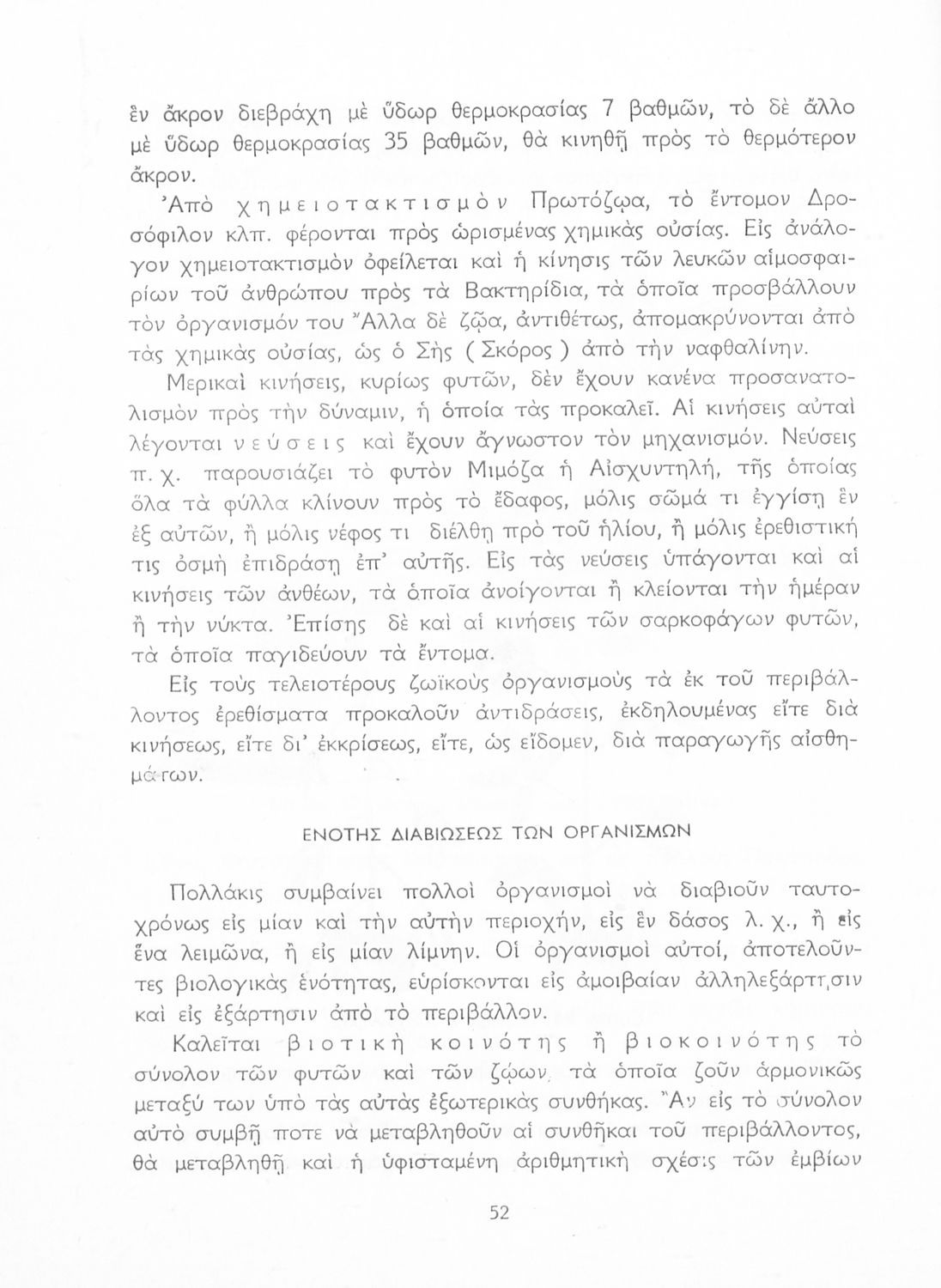 Σχολικό εγχειρίδιο Βιολογίας Δ΄ Γυμνασίου που εστιάζει στις συνθήκες γέννησης, μεταβολής και θανάτου των έμβιων οργανισμών. Ο συγγραφέας ήταν καθηγητής της γενικής Βιολογίας στο Πανεπιστήμιο Αθηνών.