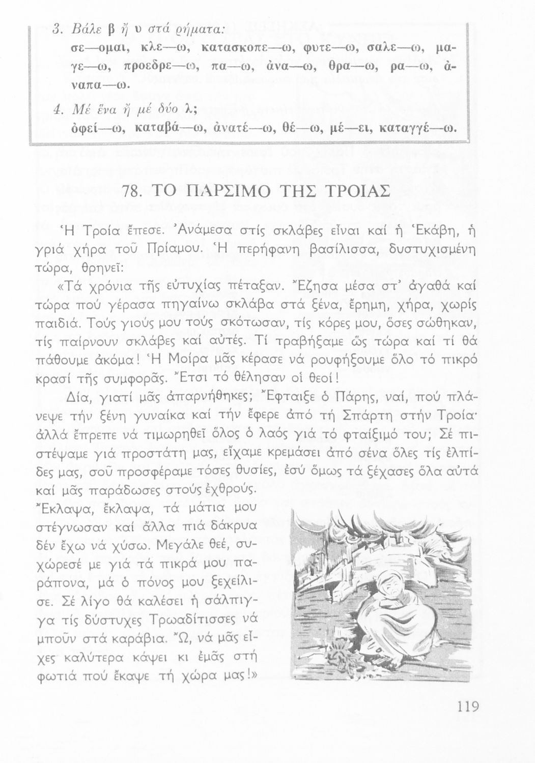 Σχολικό εγχειρίδιο για τη Γραμματική με κείμενα και ασκήσεις πάνω στα μέρη του λόγου και τις κλίσεις τους για εξάσκηση και εμπέδωση των μαθητών.