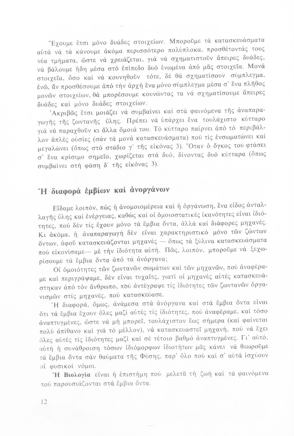 Σχολικό εγχειρίδιο Βιολογίας Γ΄ Γυμνασίου που εστιάζει στις συνθήκες γέννησης, μεταβολής και θανάτου των έμβιων οργανισμών. Περιέχει στοιχεία οικολογίας και λεξιλόγιο όρων.