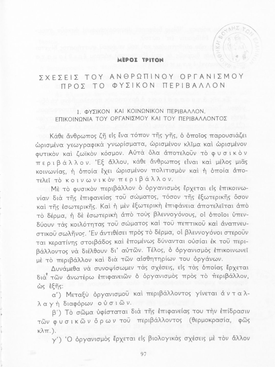 LDR 01499 2200217 4500 035 ## _a03-20557947 040 ## _aΒιβλιοθήκη της Βουλής των Ελλήνων 041 ## _ael 100 ## _aΕυαγόρας Μ. Παντελούρης 110 ## _a20557947 245 0# _aΑνθρωπολογία Β΄ Γυμνασίου 250 ## _a19η Έκδοση 260 ## _aΑθήνα _bΟργανισμός Εκδόσεως Διδακτικών Βιβλίων _c1970 300 ## _a87 _bΕικόνες, σκίτσα ασπρόμαυρα 520 ## _aΣχολικό εγχειρίδιο Ανθρωπολογίας Β΄ Γυμνασίου που εστιάζει στην κατασκευή, ανάπτυξη και λειτουργία του ανθρώπινου οργανισμού και τη σχέση του ανθρώπου με το φυσικό περιβάλλον. Περιέχει και αναφορά στις ανθρώπινες φυλές. 521 ## _aΒ' Γυμνασίου 522 ## _aΕλλάδα 546 ## _aΚαθαρεύουσα 563 ## _aΜαλακό Εξώφυλλο 583 ## _a2028/9-4-1970 _c1970 650 #4 _aΑισθήσεις _aΑλληλεπίδραση _aΑναπνοή _aΑνθρώπινες φυλές _aΔέρμα _aΚυκλοφορία του αίματος _aΛιπαρές ουσίες _aΜύες _aΝευρικό σύστημα _aΠέψη _aΣκελετός _aΣτοματική κοιλότητα _aΦυσικό και κοινωνικό περιβάλλον