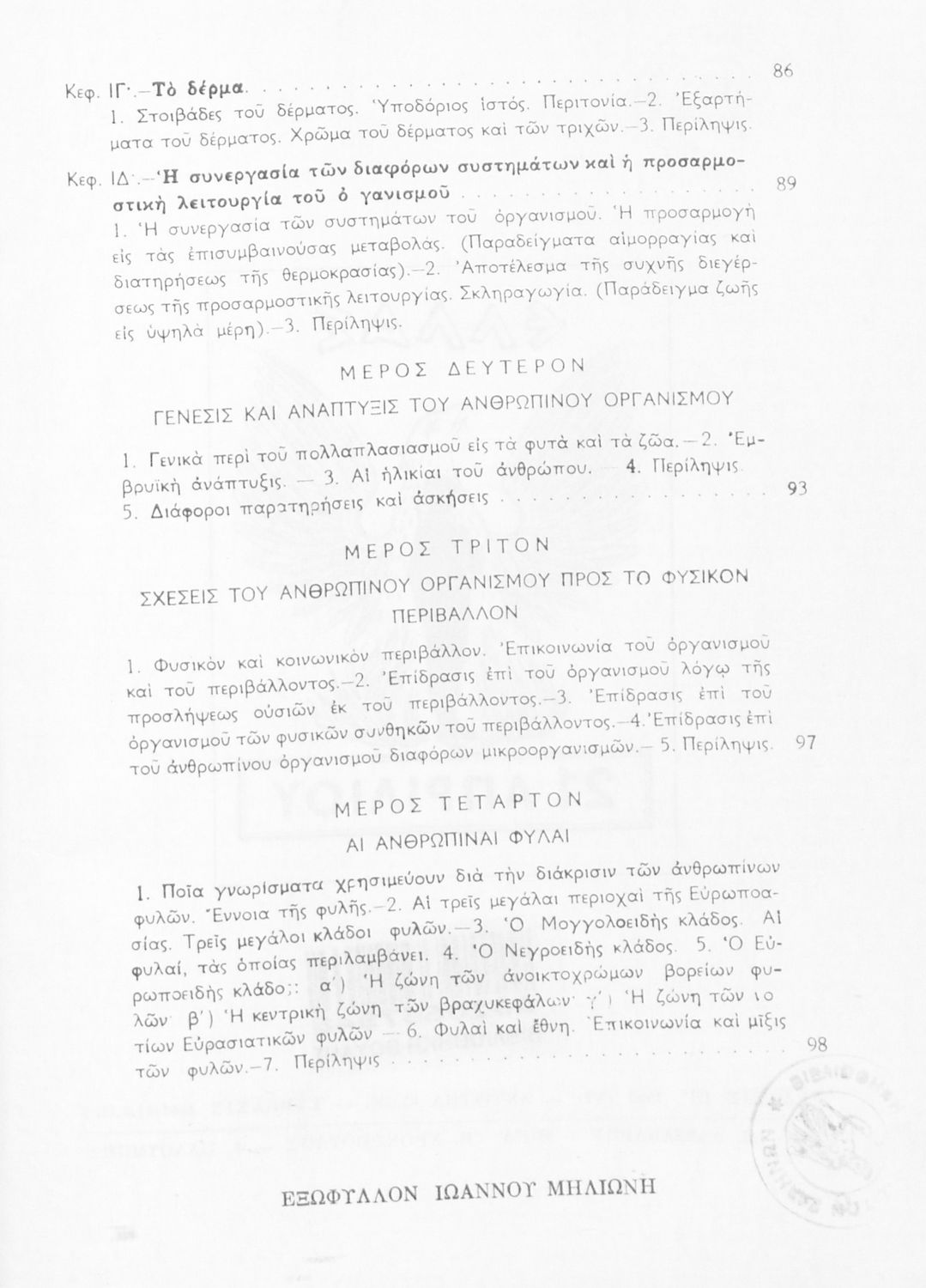 Σχολικό εγχειρίδιο Ανθρωπολογίας Β΄ Γυμνασίου που εστιάζει στην κατασκευή, ανάπτυξη και λειτουργία του ανθρώπινου οργανισμού και τη σχέση του ανθρώπου με το φυσικό περιβάλλον. Περιέχει και αναφορά στις ανθρώπινες φυλές.