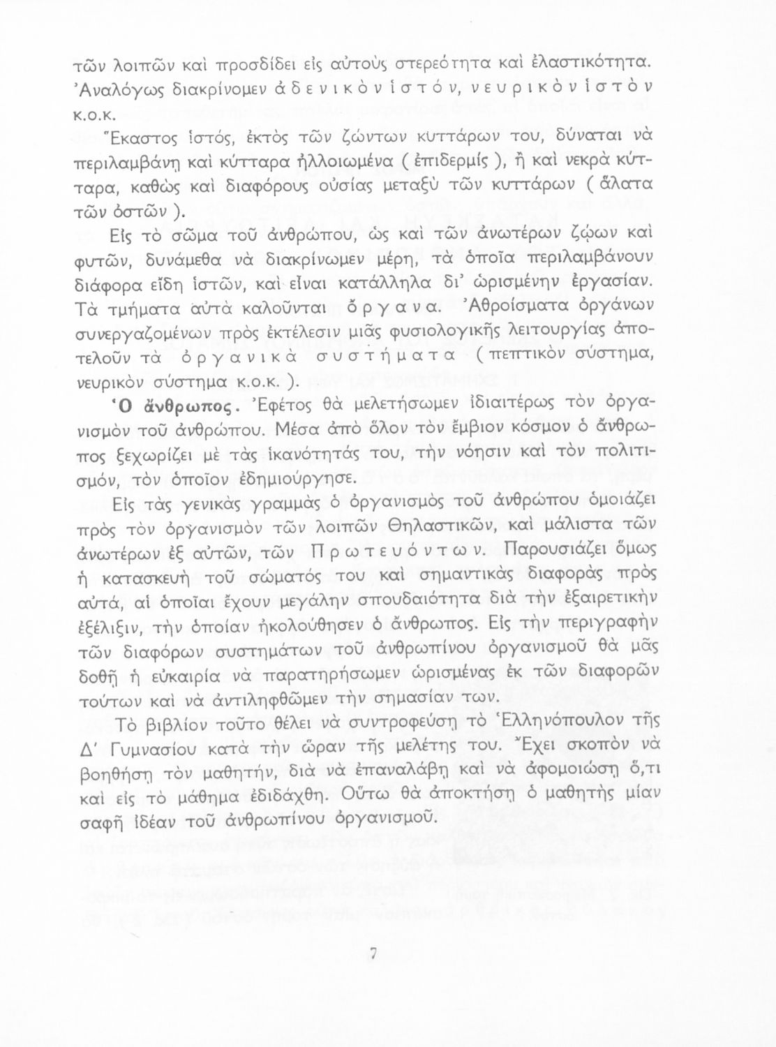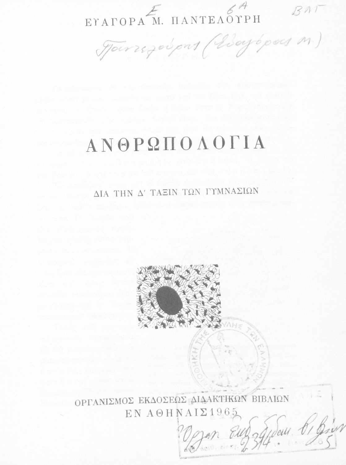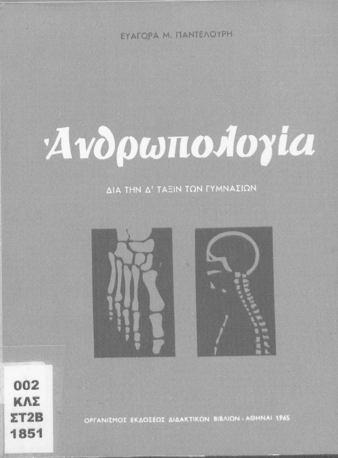 Σχολικό εγχειρίδιο Ανθρωπολογίας Δ΄ Γυμνασίου που εστιάζει στην κατασκευή, ανάπτυξη και λειτουργία του ανθρώπινου οργανισμού και τη σχέση του ανθρώπου με το φυσικό περιβάλλον. Περιέχει και αναφορά στις ανθρώπινες φυλές.