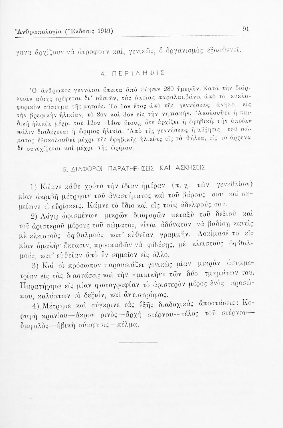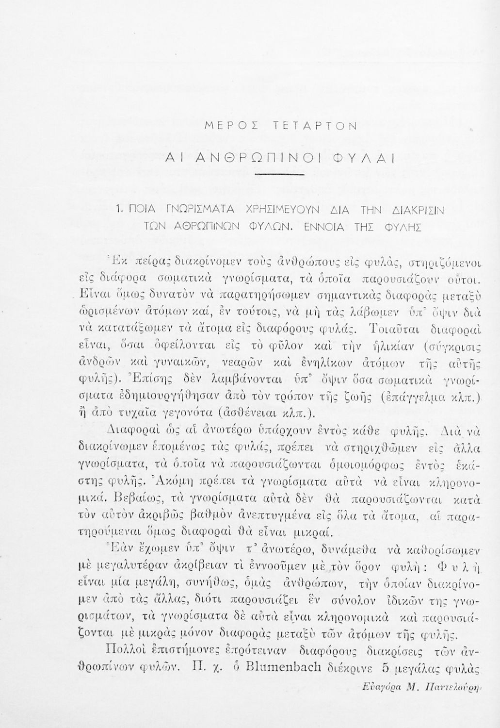 Ανθρωπολογία δια την Τετάρτην Τάξιν των Γυμνασίων
