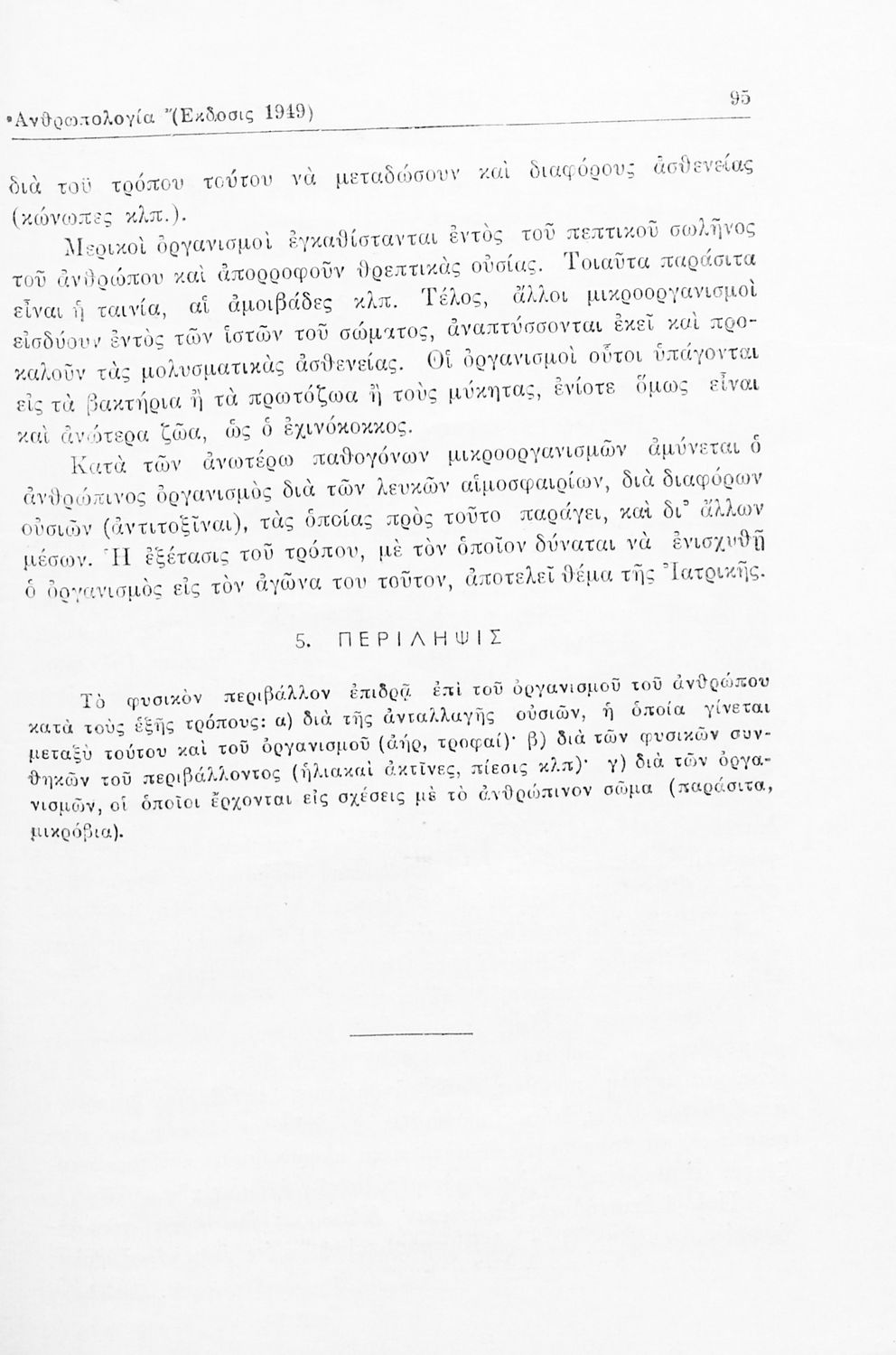 Σχολικό εγχειρίδιο Ανθρωπολογίας για την Ε΄ τάξη των Εξαταξίων Γυμνασίων που εστιάζει στην ανατομία και φυσιολογία του ανθρώπινου σώματος καθώς και στα μικρόβια και νοσήματα.