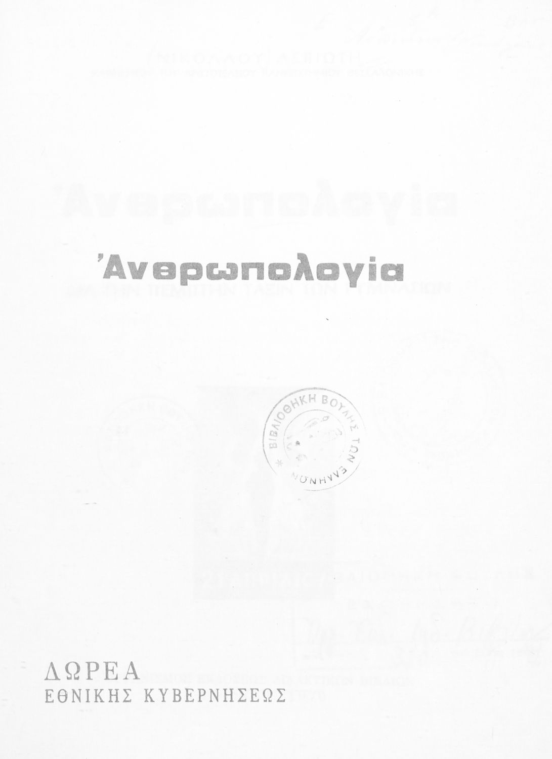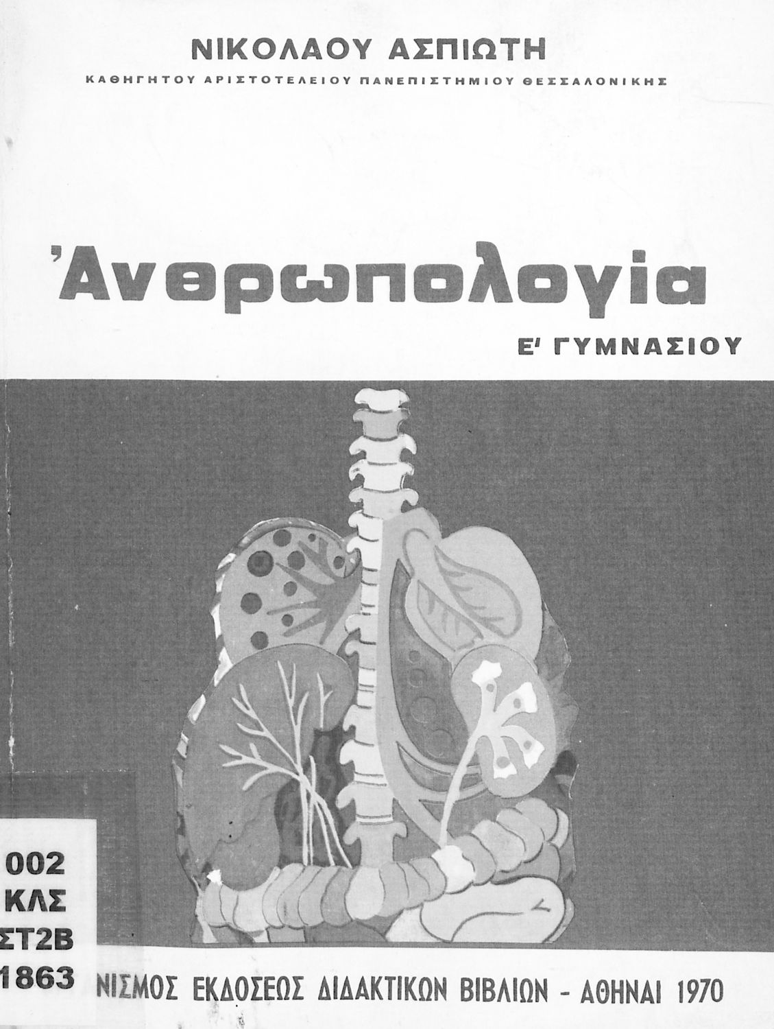 Σχολικό εγχειρίδιο Ανθρωπολογίας Ε΄ Γυμνασίου που εστιάζει στην κατασκευή, ανάπτυξη και λειτουργία του ανθρώπινου οργανισμού και τη σχέση του ανθρώπου με το φυσικό περιβάλλον. Περιέχει και αναφορά στις ανθρώπινες φυλές.