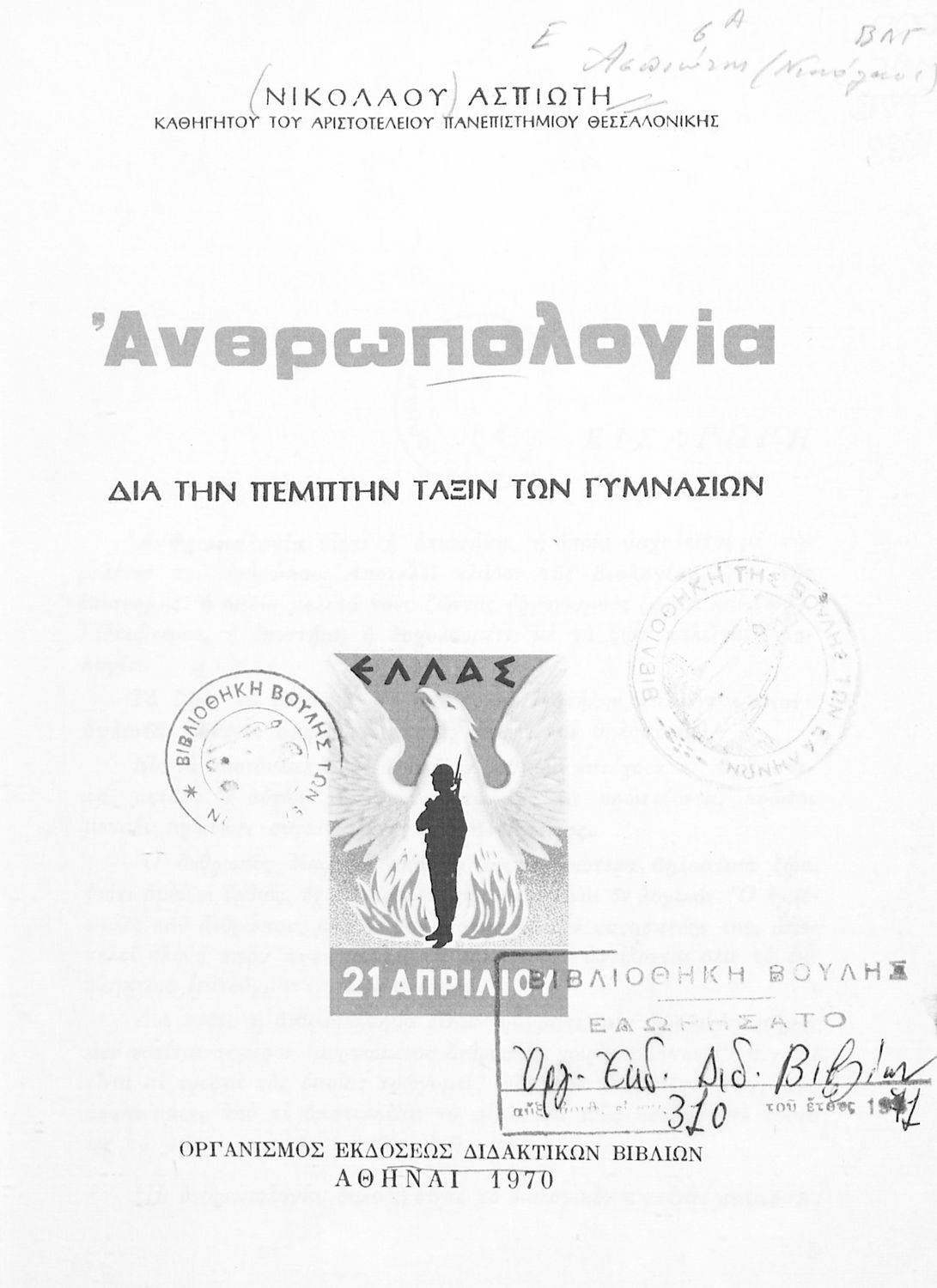 Εκδότης: Οργανισμός Εκδόσεως Διδακτικών Βιβλίων Έτος έκδοσης: 1970 Τόπος έκδοσης: Αθήνα Έκδοση: 2η Υπουργική απόφαση / Σύμβαση: 2020/9-4-1970 Έτος έγκρισης: 1970 |