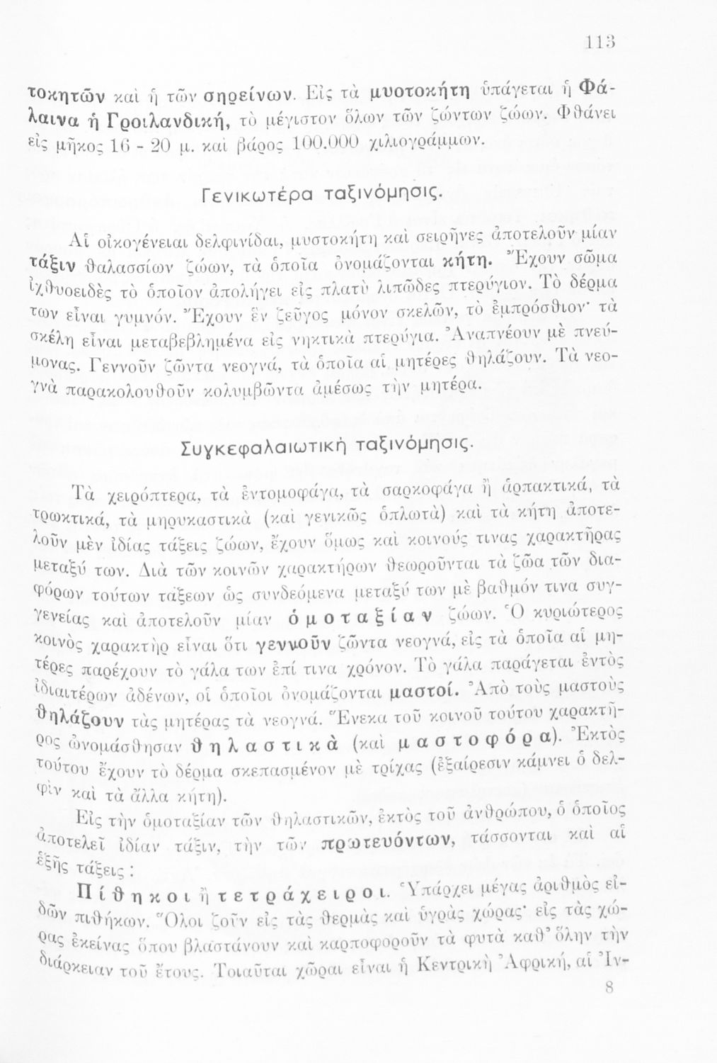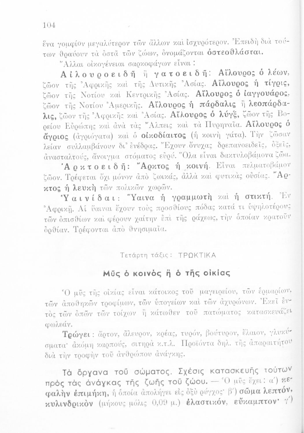Σχολικό εγχειρίδιο Ζωολογίας/Φυτολογίας για τα Γυμνάσια και Αστικά Σχολεία που παρουσιάζει διάφορα ζώα και φυτά ανάλογα με τη συνομοταξία στην οποία ανήκουν.