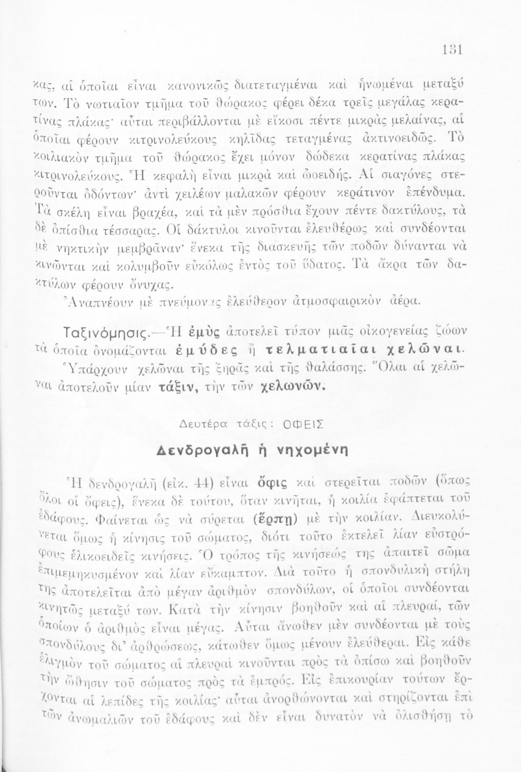 Σχολικό εγχειρίδιο Ζωολογίας/Φυτολογίας για τα Γυμνάσια και Αστικά Σχολεία που παρουσιάζει διάφορα ζώα και φυτά ανάλογα με τη συνομοταξία στην οποία ανήκουν.