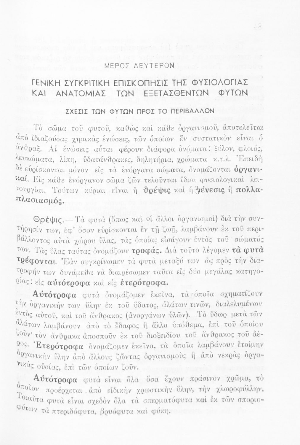 Σχολικό εγχειρίδιο Φυτολογίας για τη Β΄ Γυμνασίου που περιέχει πληροφορίες για τα φυτά της Ελλάδας καθώς και στοιχεία Ζωολογίας για ζώα διαφόρων τόπων.