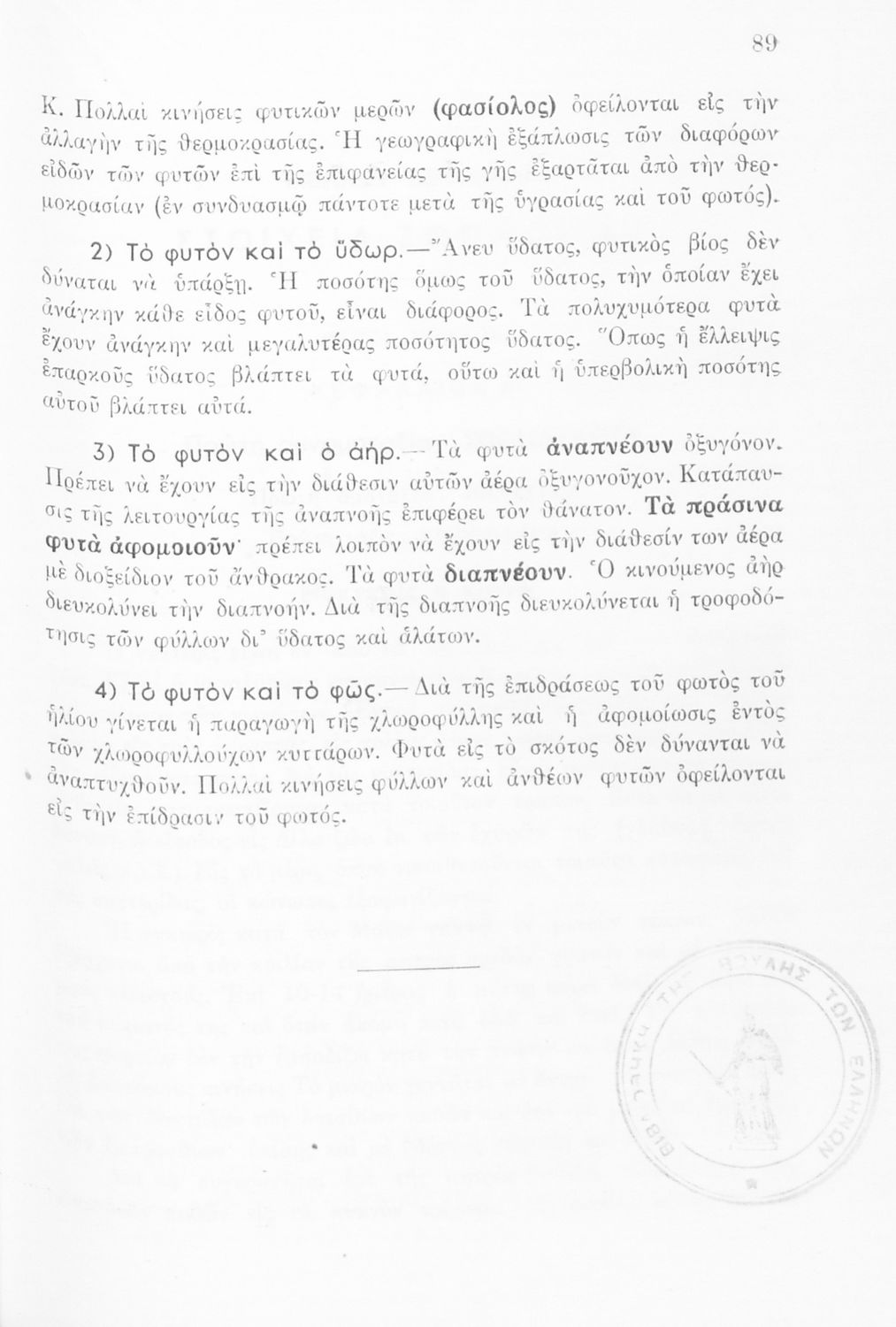 Σχολικό εγχειρίδιο Φυτολογίας για τη Γ΄ Γυμνασίου και τη Β΄ τάξη των Αστικών σχολείων που περιέχει πληροφορίες για τα φυτά της Ελλάδας καθώς και στοιχεία Ζωολογίας για ζώα διαφόρων τόπων. Σχέδια και ζωγραφιές ...