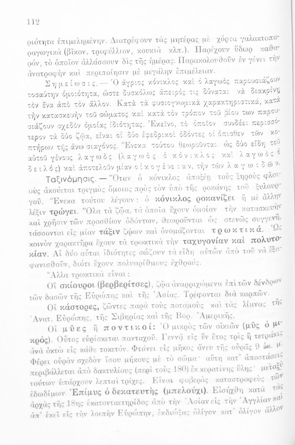 520 ## _aΣχολικό εγχειρίδιο Φυτολογίας και Ζωολογίας της Β΄ τάξης Γυμνασίων και Α΄ τάξης Αστικών Σχολίων. Το βιβλίο χωρίζεται σε δύο μέρη. Στο πρώτο μέρος παρουσιάζει μια επισκόπηση των διαφορετικών φυτών, όπως τα σπερματόφυτα και τα σποριόφυτα. Στο δεύτερο παρουσιάζονται τα διαφορετικά είδη ζώων όπως τα θηλαστικά, τα μαλάκια, τα πτηνά και τα ερπετά αναλύοντας τα χαρακτηριστικά και τις ιδιότητες του καθενός.