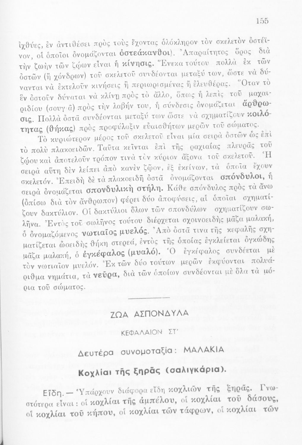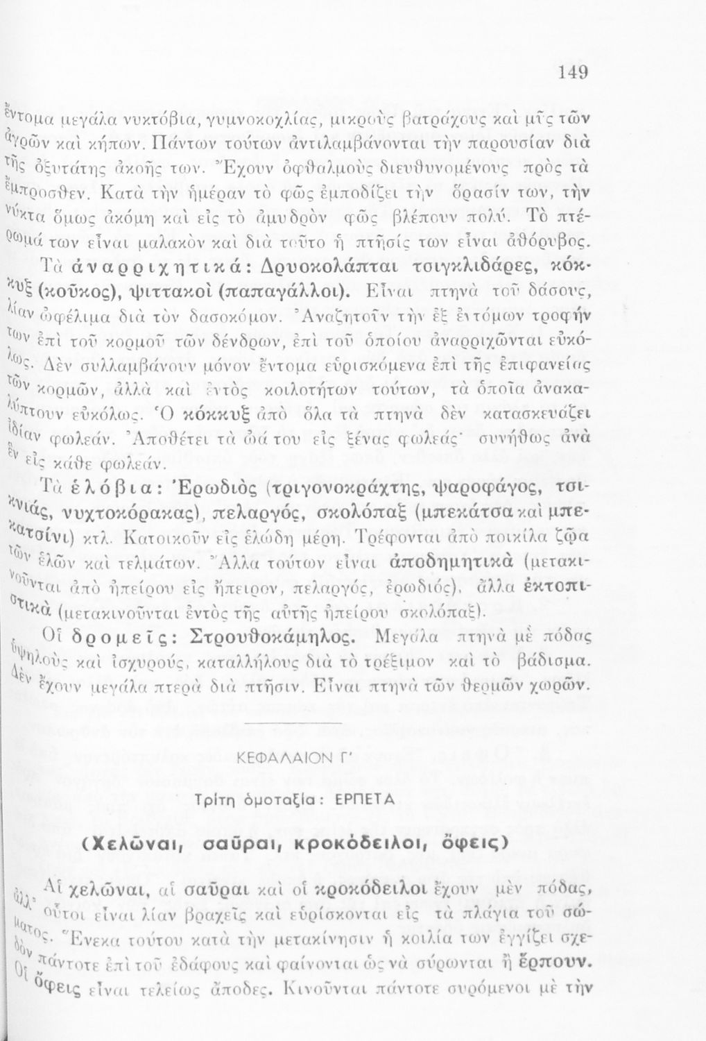 Σχολικό εγχειρίδιο Ζωολογίας/Φυτολογίας για τα Γυμνάσια και Αστικά Σχολεία που παρουσιάζει διάφορα ζώα και φυτά ανάλογα με τη συνομοταξία στην οποία ανήκουν.