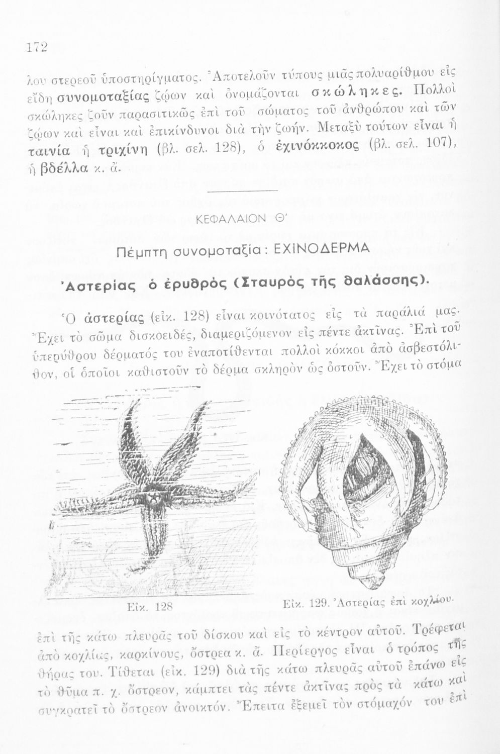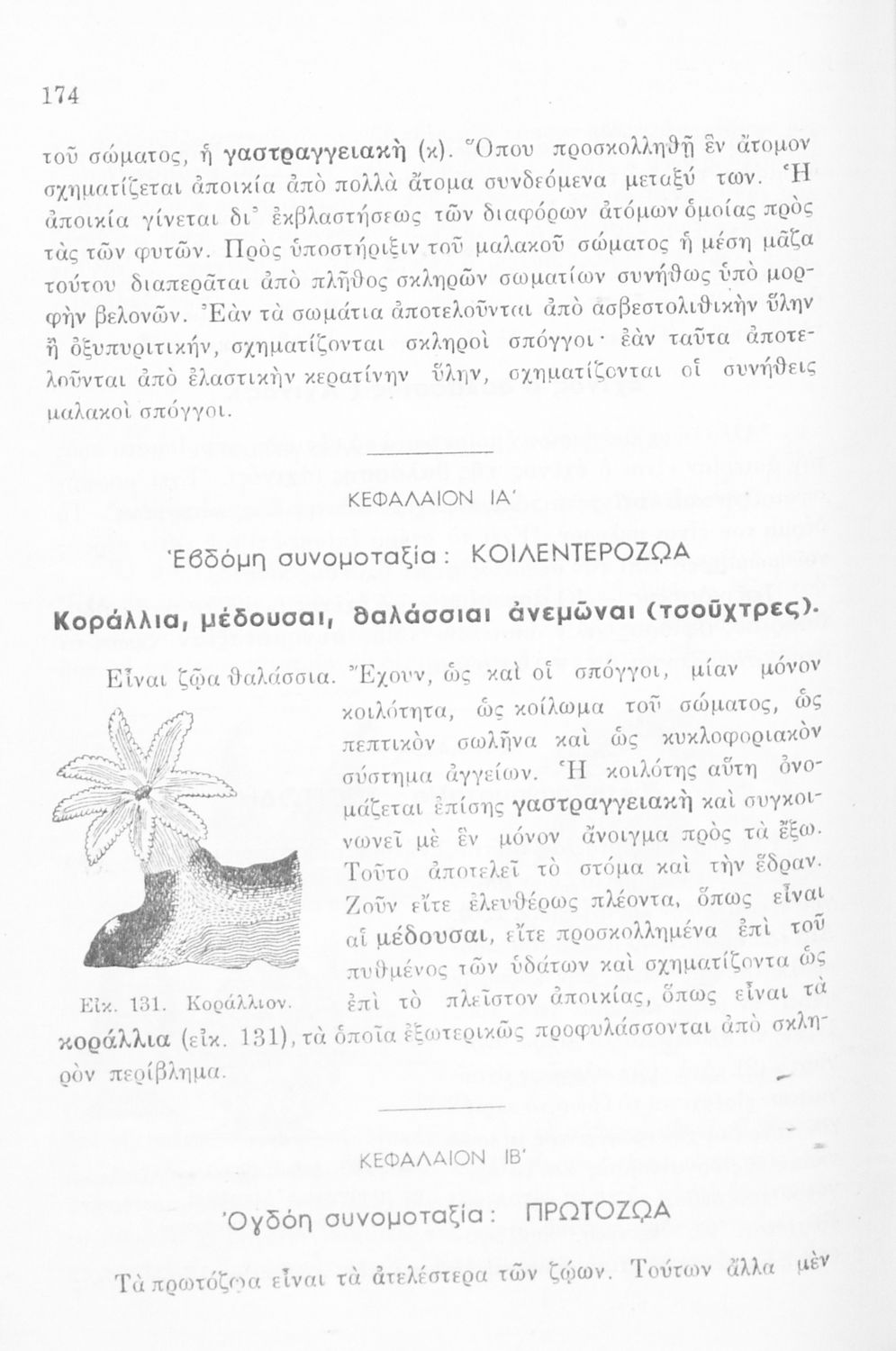 Σχολικό εγχειρίδιο Ζωολογίας/Φυτολογίας για τα Γυμνάσια και Αστικά Σχολεία που παρουσιάζει διάφορα ζώα και φυτά ανάλογα με τη συνομοταξία στην οποία ανήκουν.
