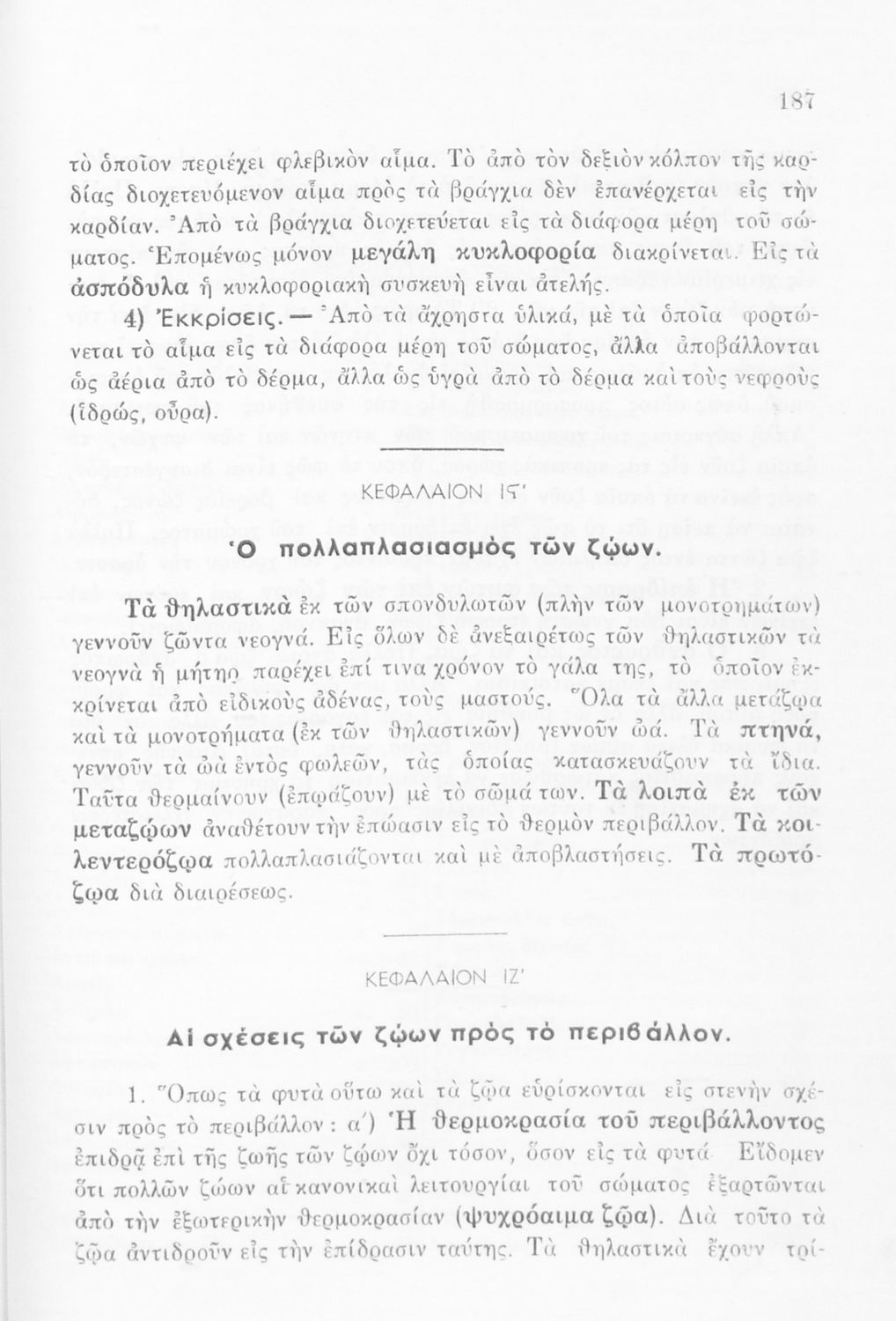 Σχολικό εγχειρίδιο Φυτολογίας και Ζωολογίας της Β΄ τάξης Γυμνασίων και Α΄ τάξης Αστικών Σχολίων. Το βιβλίο χωρίζεται σε δύο μέρη. Στο πρώτο μέρος παρουσιάζει μια επισκόπηση των διαφορετικών φυτών, όπως τα σπερματόφυτα και τα σποριόφυτα. Στο δεύτερο παρουσιάζονται τα διαφορετικά είδη ζώων όπως τα θηλαστικά, τα μαλάκια, τα πτηνά και τα ερπετά αναλύοντας τα χαρακτηριστικά και τις ιδιότητες του καθενός.