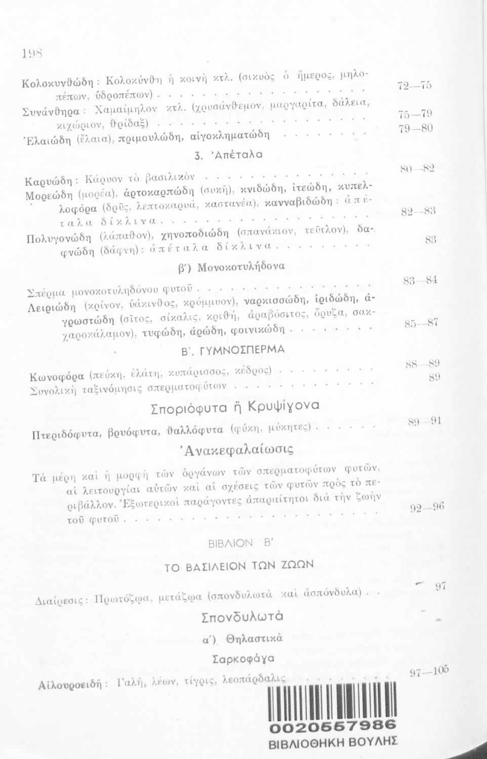 Σχολικό εγχειρίδιο Φυτολογίας για τη Γ΄ Γυμνασίου και τη Β΄ τάξη των Αστικών σχολείων που περιέχει πληροφορίες για τα φυτά της Ελλάδας καθώς και στοιχεία Ζωολογίας για ζώα διαφόρων τόπων. Σχέδια και ζωγραφιές ...