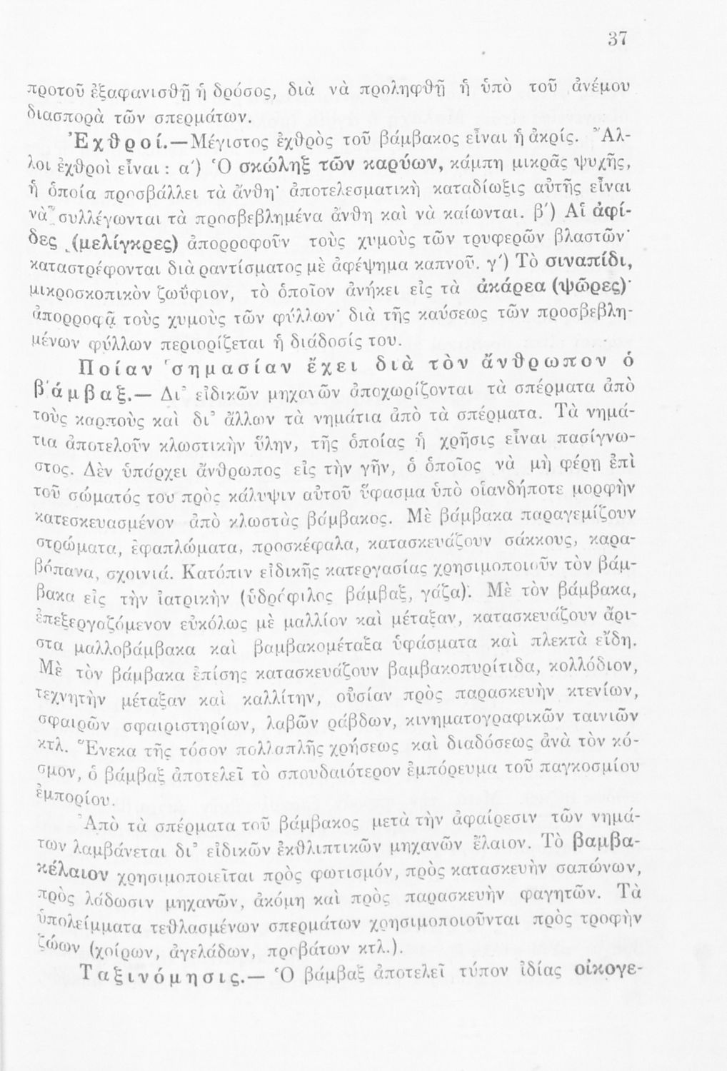 520 ## _aΣχολικό εγχειρίδιο Φυτολογίας και Ζωολογίας της Β΄ τάξης Γυμνασίων και Α΄ τάξης Αστικών Σχολίων. Το βιβλίο χωρίζεται σε δύο μέρη. Στο πρώτο μέρος παρουσιάζει μια επισκόπηση των διαφορετικών φυτών, όπως τα σπερματόφυτα και τα σποριόφυτα. Στο δεύτερο παρουσιάζονται τα διαφορετικά είδη ζώων όπως τα θηλαστικά, τα μαλάκια, τα πτηνά και τα ερπετά αναλύοντας τα χαρακτηριστικά και τις ιδιότητες του καθενός.