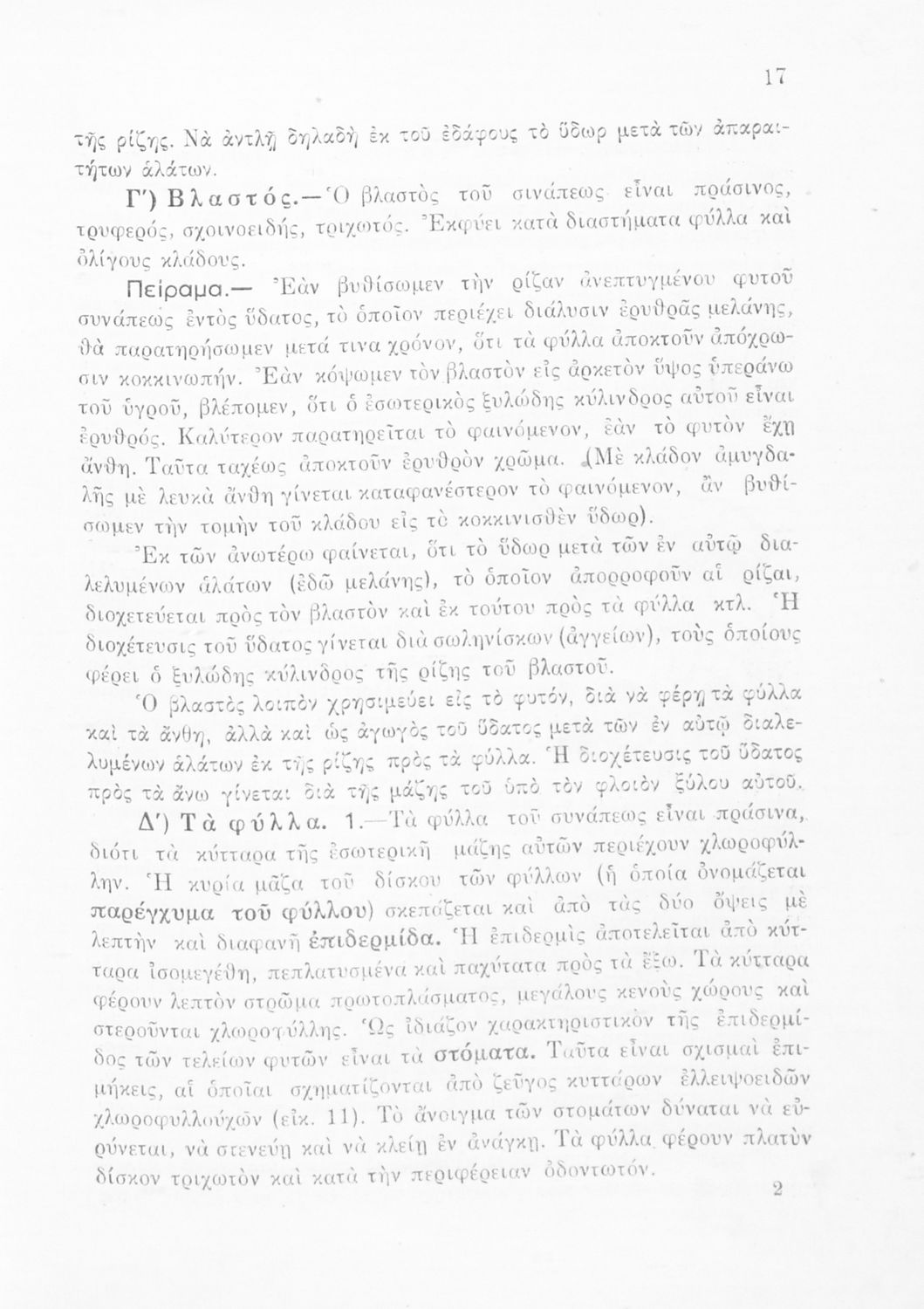 Βαθμίδα εκπαίδευσης: Δευτεροβάθμια Τάξη: Β' Γυμνασίου / Α' Αστικού Σχολείου Γλώσσα: Καθαρεύουσα Παρουσίαση περιεχομένου: Σχολικό εγχειρίδιο Φυτολογίας και Ζωολογίας της Β΄ τάξης Γυμνασίων και Α΄ τάξης Αστικών Σχολίων. Το βιβλίο χωρίζεται σε δύο μέρη. Στο πρώτο μέρος παρουσιάζει μια επισκόπηση των διαφορετικών φυτών, όπως τα σπερματόφυτα και τα σποριόφυτα. Στο δεύτερο παρουσιάζονται τα διαφορετικά είδη ζώων όπως τα θηλαστικά, τα μαλάκια, τα πτηνά και τα ερπετά αναλύοντας τα χαρακτηριστικά και τις ιδιότητες του καθενός. |