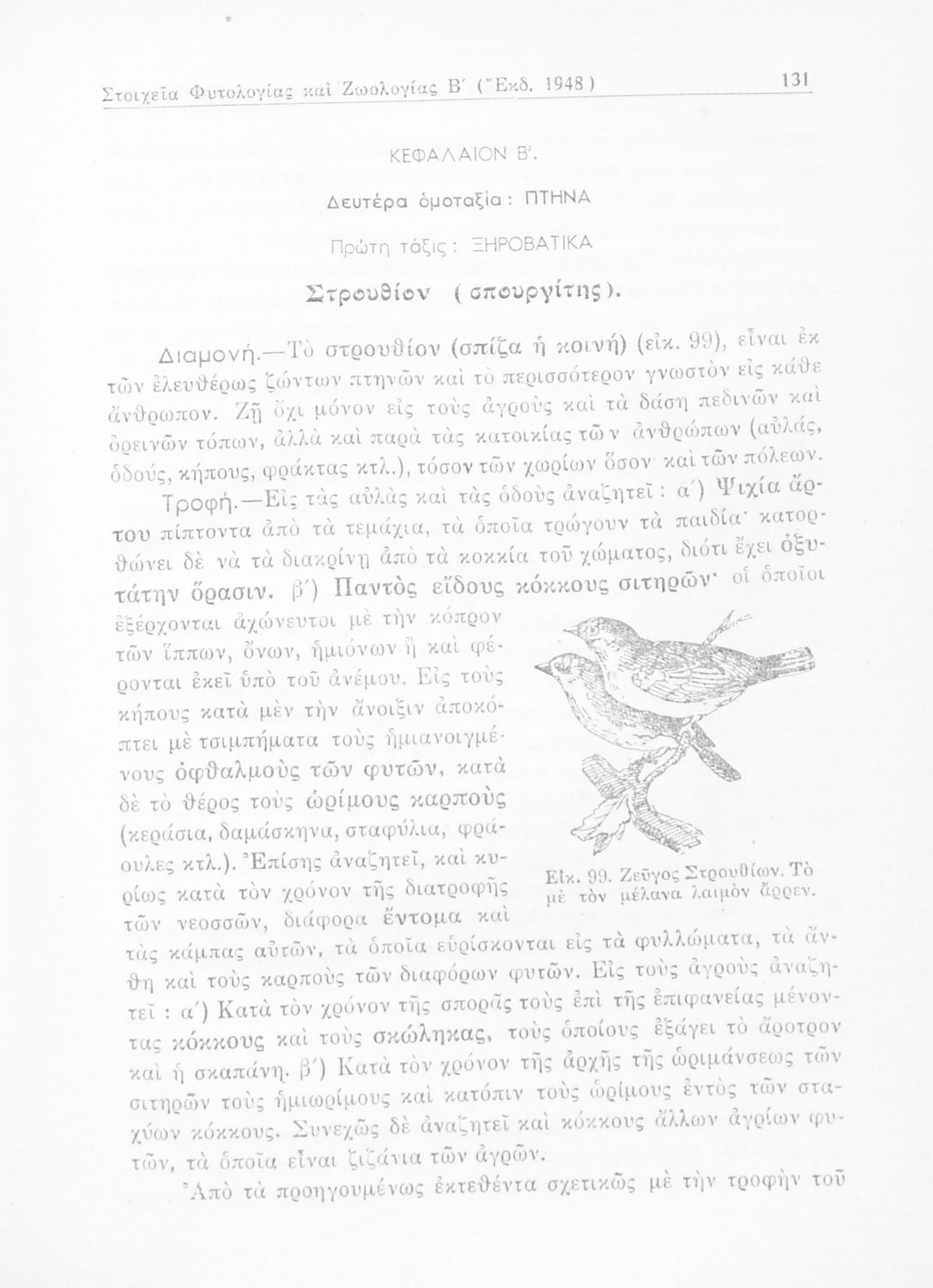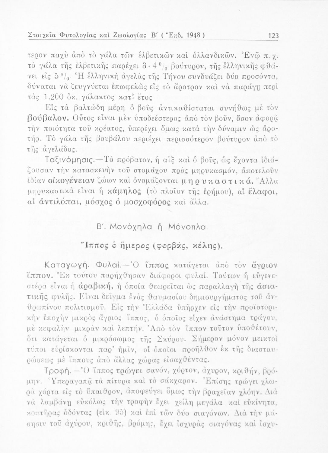 Σχολικό εγχειρίδιο Φυτολογίας - Ζωολογίας για τους μαθητές της Β' Τάξης Γυμνασίου, και της Α' Τάξης Αστικών Σχολείων. Περιέχει μια εισαγωγή της Φυτολογίας και της Ζωολογίας. Χωρίζεται σε δύο μέρη. Στο πρώτο μέρος παρουσιάζει μια επισκόπηση των διαφορετικών φυτών όπως είναι τα σπερματόφυτα και τα σποριόφυτα. Στο δεύτερο παρουσιάζει τα διαφορετικά είδη των ζώων τα θηλαστικά, τα μαλάκια, τα πτηνά και τα ερπετά.