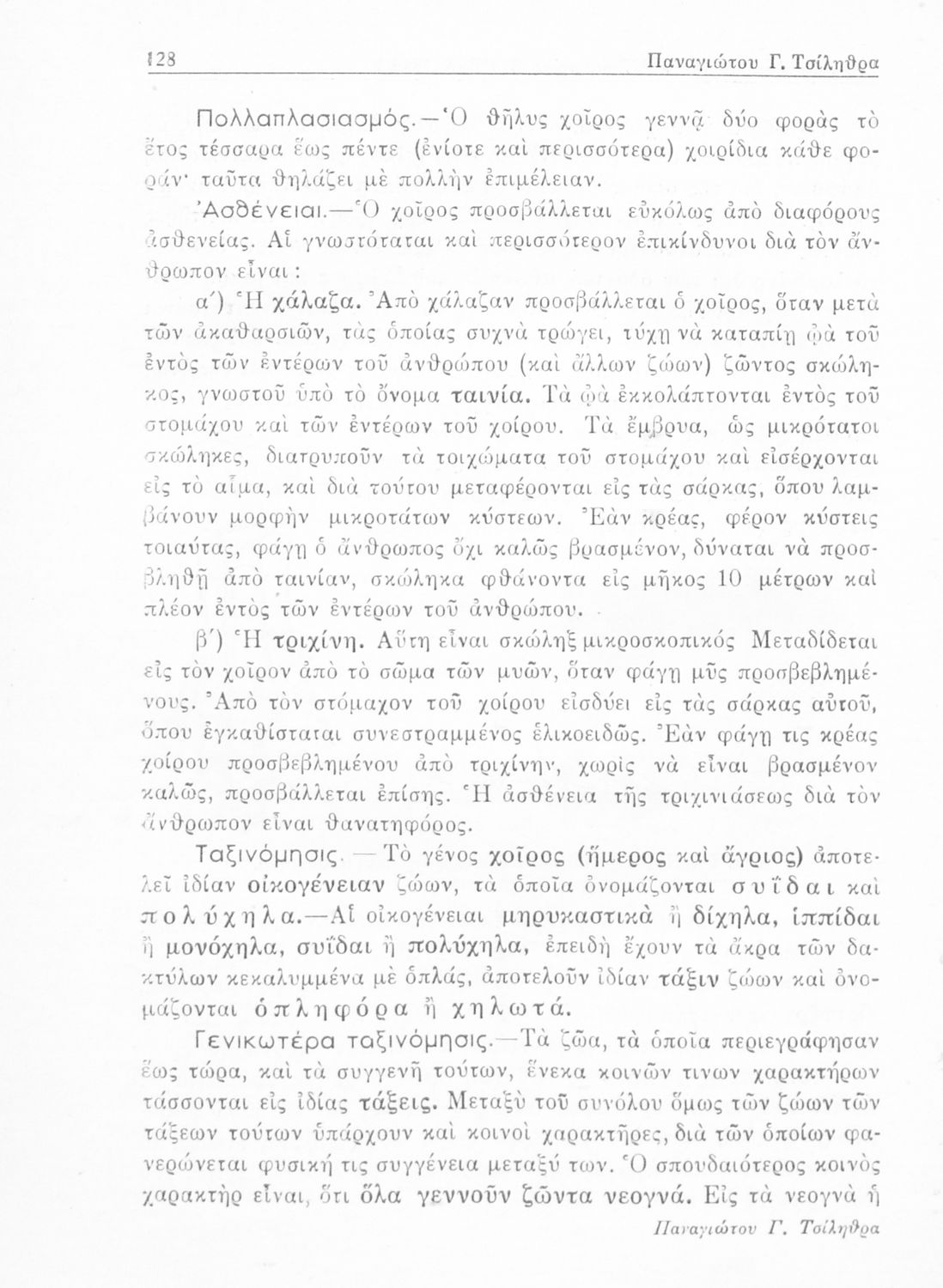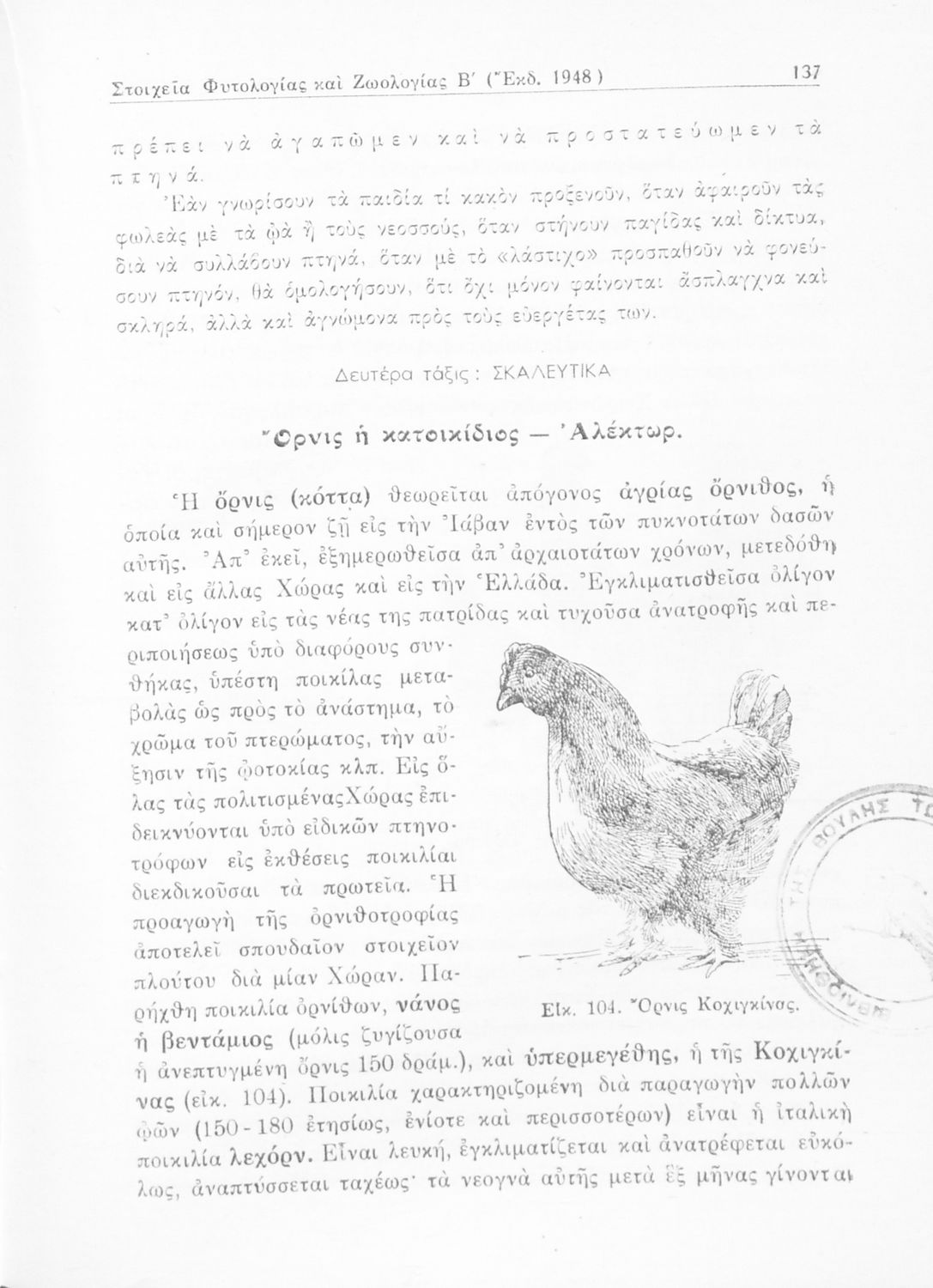 Σχολικό εγχειρίδιο Ζωολογίας/Φυτολογίας για τα Γυμνάσια και Αστικά Σχολεία που παρουσιάζει διάφορα ζώα και φυτά ανάλογα με τη συνομοταξία στην οποία ανήκουν.
