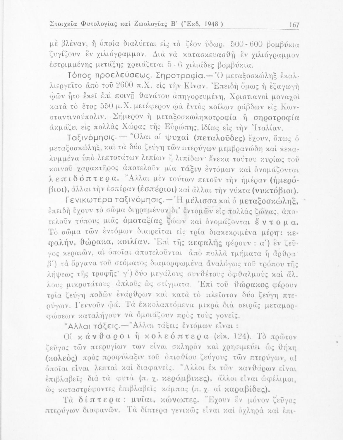 Σχολικό εγχειρίδιο Φυτολογίας - Ζωολογίας για τους μαθητές της Β' Τάξης Γυμνασίου, και της Α' Τάξης Αστικών Σχολείων. Περιέχει μια εισαγωγή της Φυτολογίας και της Ζωολογίας. Χωρίζεται σε δύο μέρη. Στο πρώτο μέρος παρουσιάζει μια επισκόπηση των διαφορετικών φυτών όπως είναι τα σπερματόφυτα και τα σποριόφυτα. Στο δεύτερο παρουσιάζει τα διαφορετικά είδη των ζώων τα θηλαστικά, τα μαλάκια, τα πτηνά και τα ερπετά.