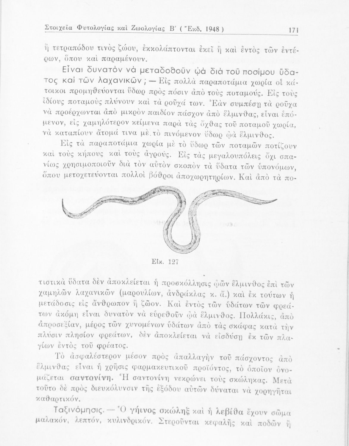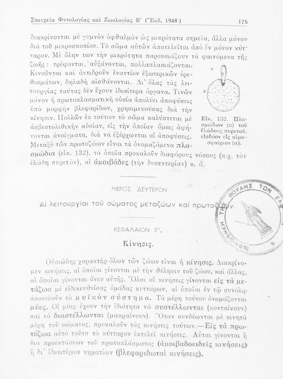 Σχολικό εγχειρίδιο Φυτολογίας για τη Β΄ Γυμνασίου και Α΄ τάξη Αστικών σχολείων που περιέχει πληροφορίες για τα φυτά της Ελλάδας καθώς και στοιχεία Ζωολογίας για ζώα διαφόρων τόπων.