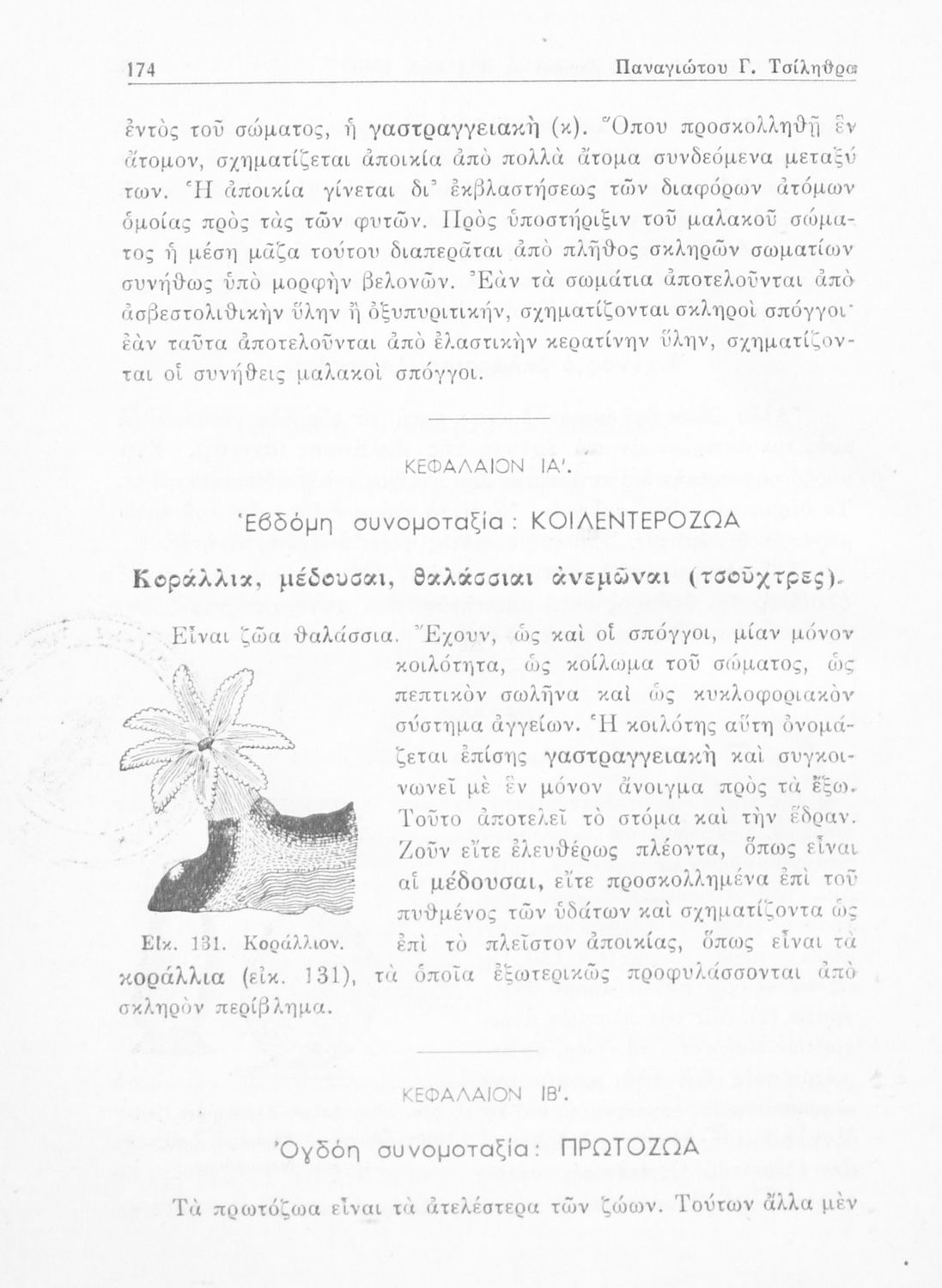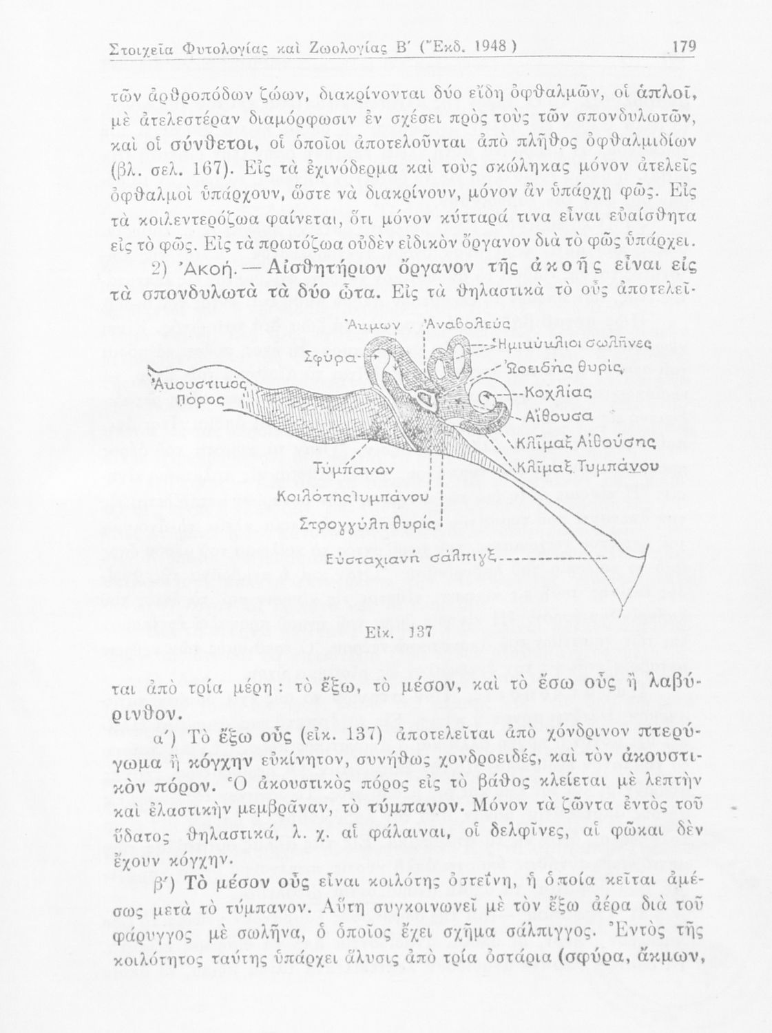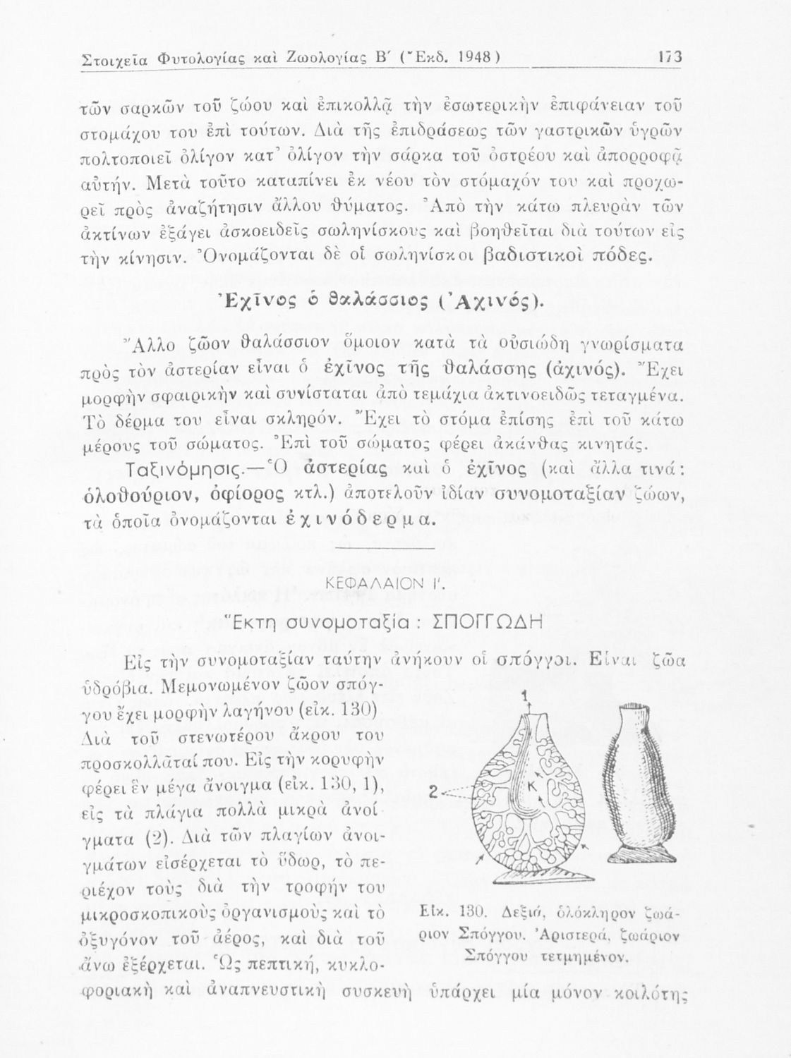 Σχολικό εγχειρίδιο Ζωολογίας/Φυτολογίας για τα Γυμνάσια και Αστικά Σχολεία που παρουσιάζει διάφορα ζώα και φυτά ανάλογα με τη συνομοταξία στην οποία ανήκουν.