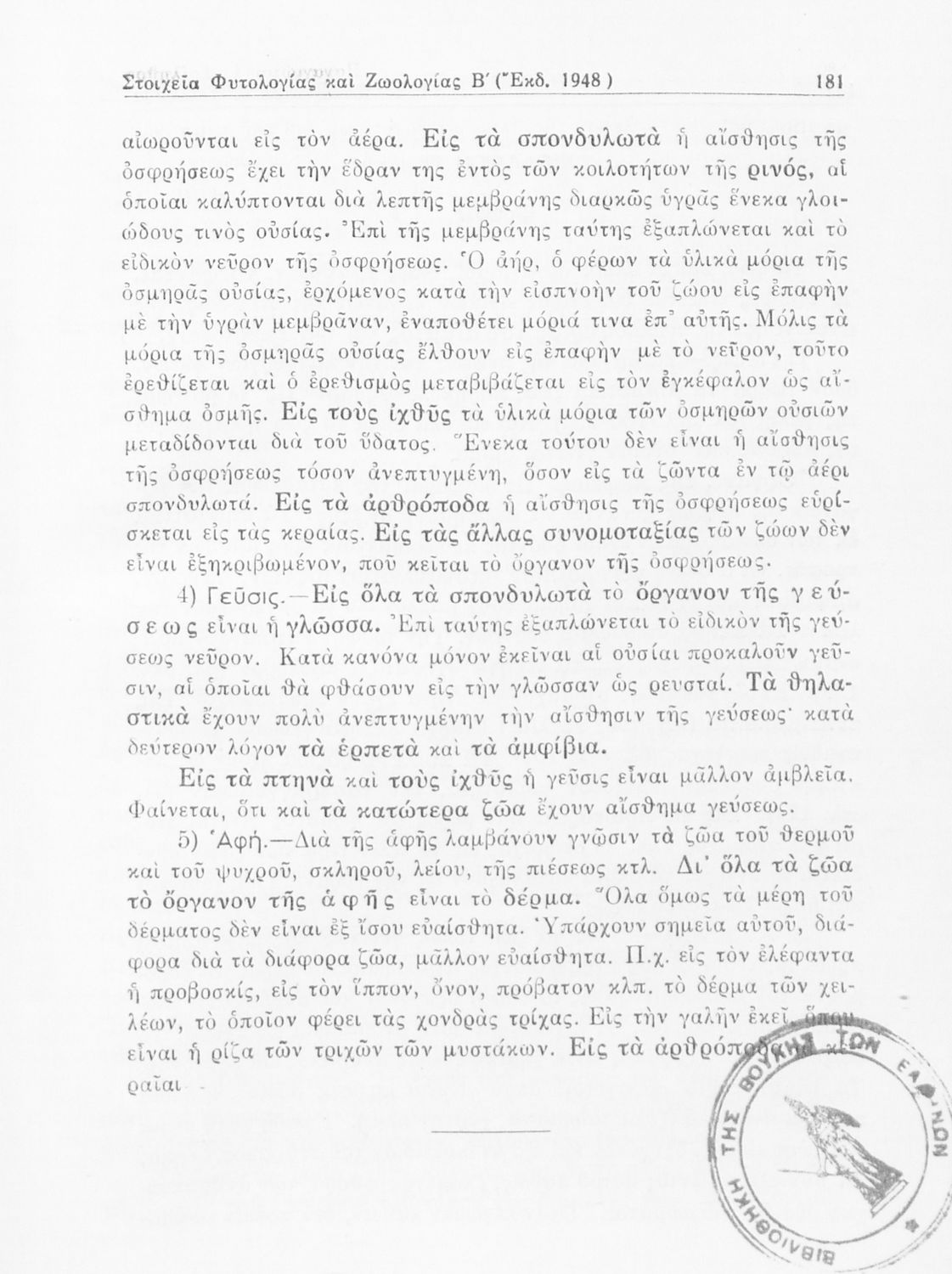 Σχολικό εγχειρίδιο Φυτολογίας για τη Β΄ Γυμνασίου και Α΄ τάξη Αστικών σχολείων που περιέχει πληροφορίες για τα φυτά της Ελλάδας καθώς και στοιχεία Ζωολογίας για ζώα διαφόρων τόπων.