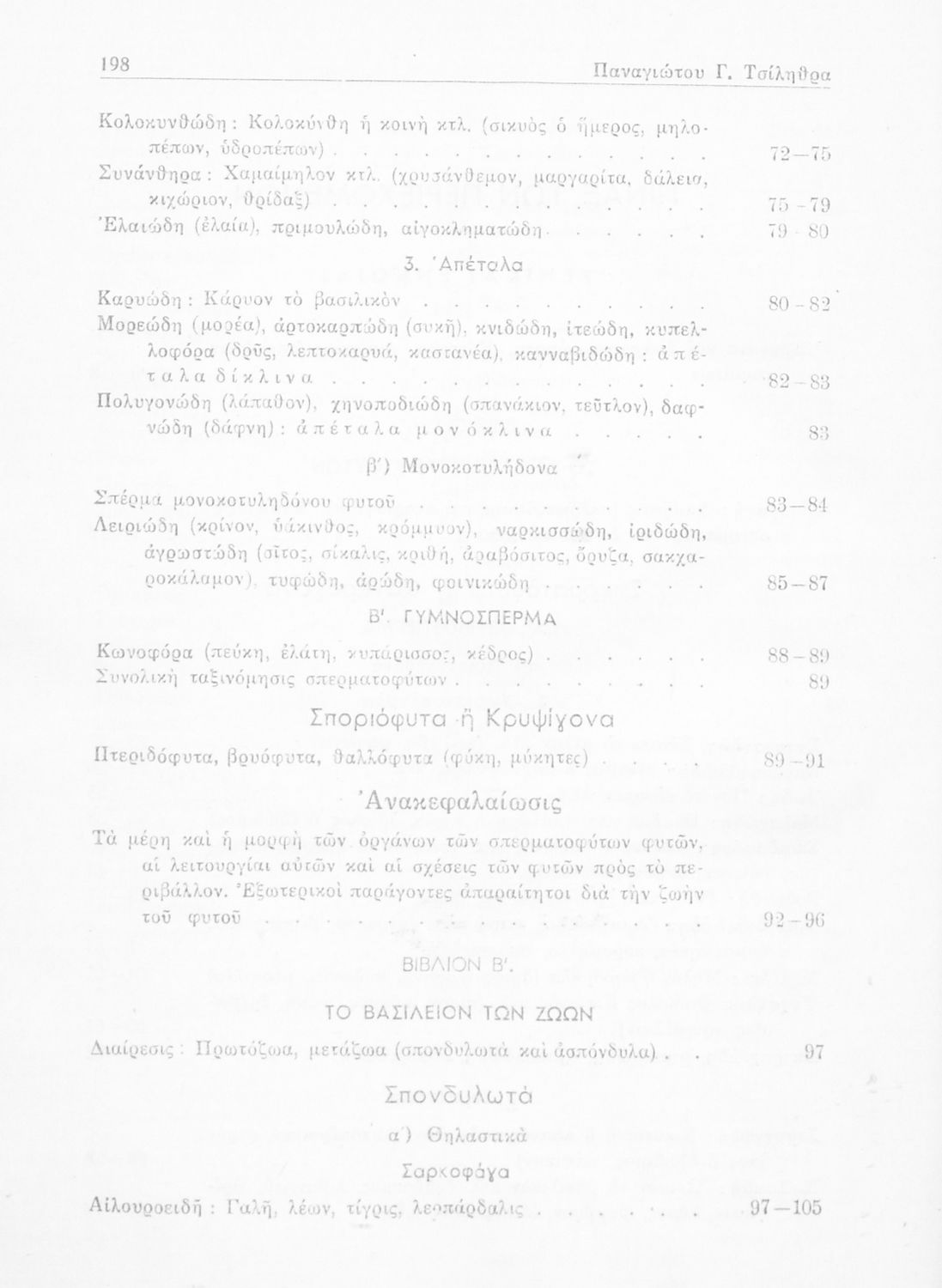 Σχολικό εγχειρίδιο Φυτολογίας - Ζωολογίας για τους μαθητές της Β' Τάξης Γυμνασίου, και της Α' Τάξης Αστικών Σχολείων. Περιέχει μια εισαγωγή της Φυτολογίας και της Ζωολογίας. Χωρίζεται σε δύο μέρη. Στο πρώτο μέρος παρουσιάζει μια επισκόπηση των διαφορετικών φυτών όπως είναι τα σπερματόφυτα και τα σποριόφυτα. Στο δεύτερο παρουσιάζει τα διαφορετικά είδη των ζώων τα θηλαστικά, τα μαλάκια, τα πτηνά και τα ερπετά.