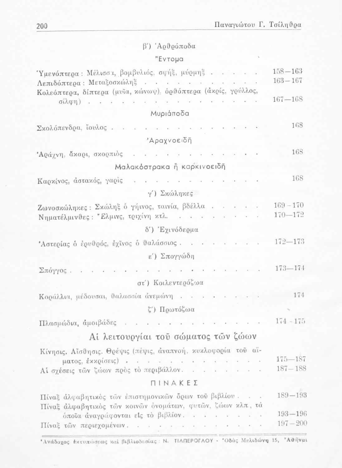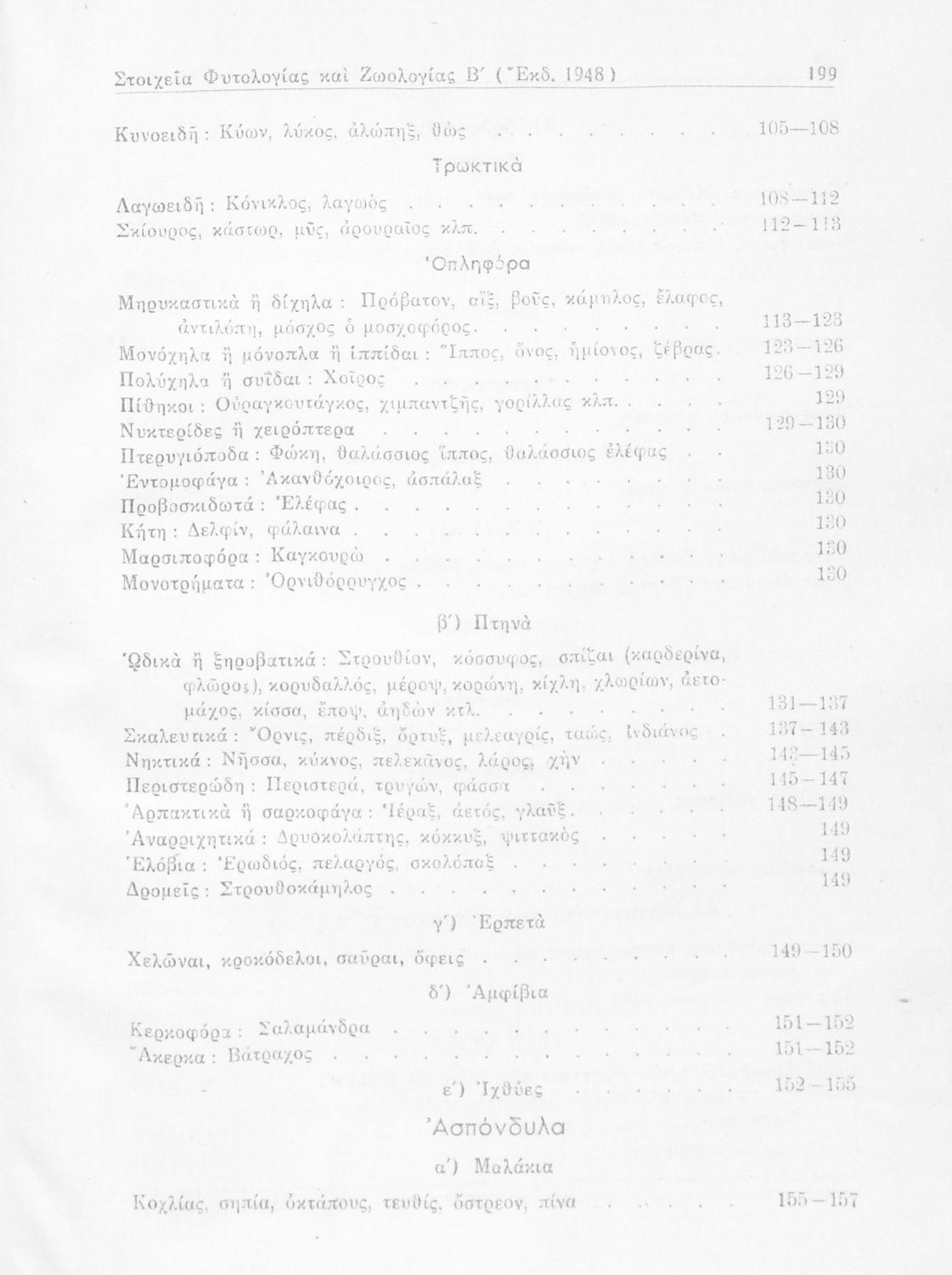 Σχολικό εγχειρίδιο Ζωολογίας/Φυτολογίας για τα Γυμνάσια και Αστικά Σχολεία που παρουσιάζει διάφορα ζώα και φυτά ανάλογα με τη συνομοταξία στην οποία ανήκουν.