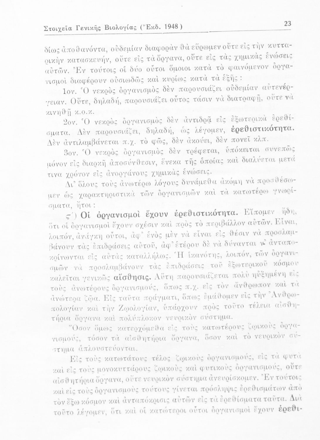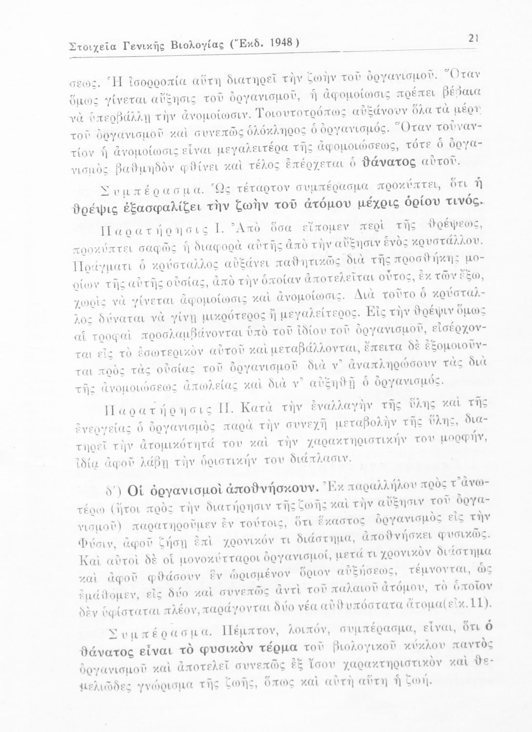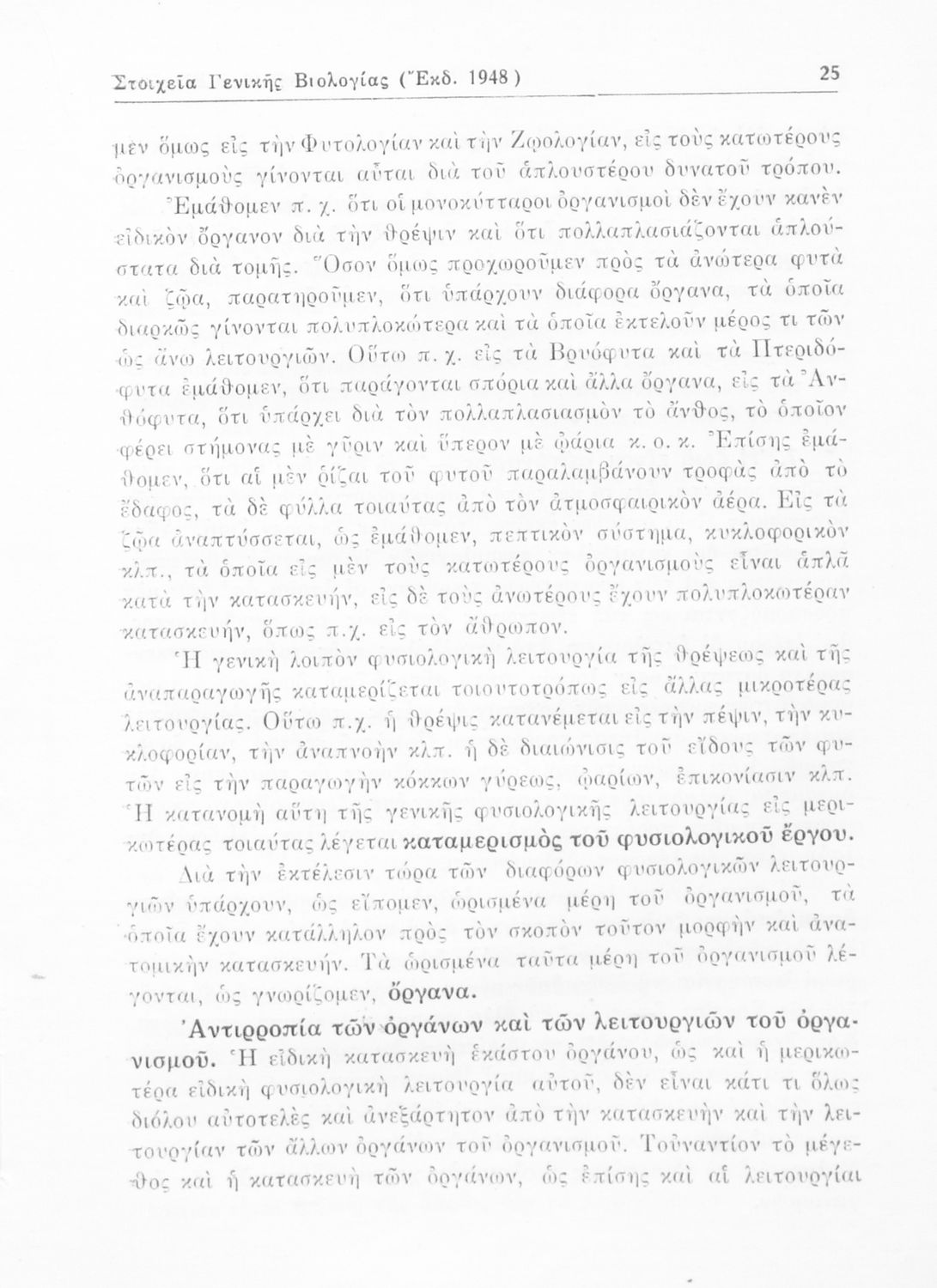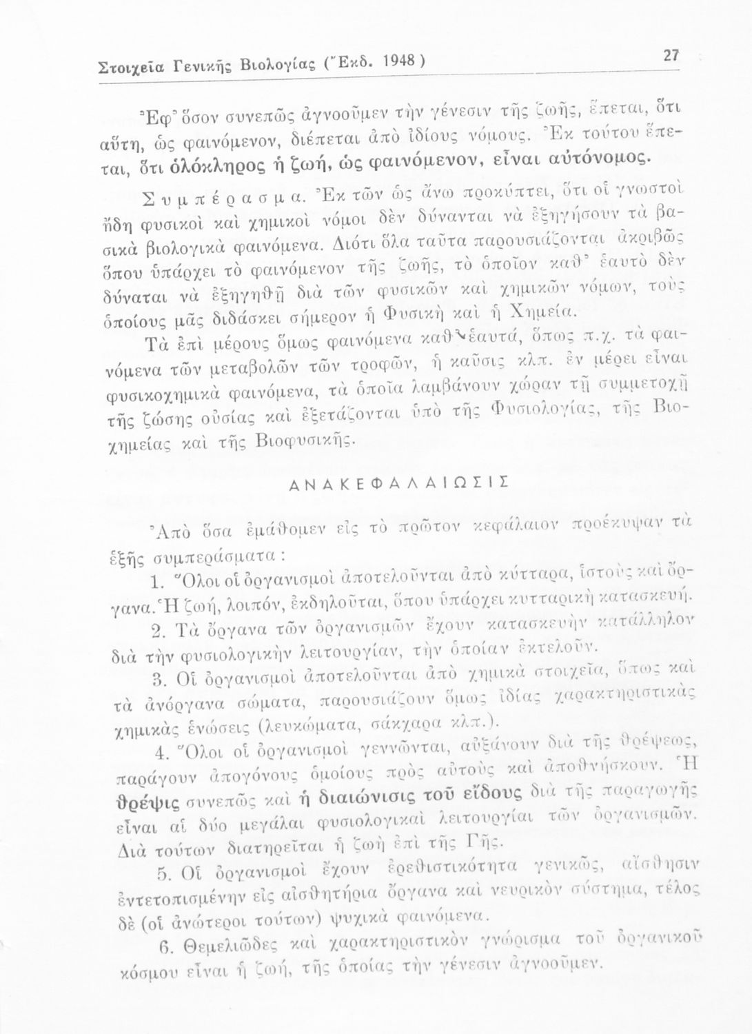 Στοιχεία Γενικής Βιολογίας δια την Δ' τάξιν των Γυμνασίων παλαιού τύπου