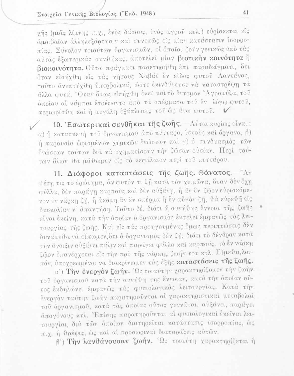 LDR 01743 2200217 4500 035 ## _a03-20557991 040 ## _aΒιβλιοθήκη της Βουλής των Ελλήνων 041 ## _ael 100 ## _aΘρασύβουλος Βλησίδης 110 ## _a20557991 245 0# _aΣτοιχεία Γενικής Βιολογίας δια την Δ' τάξιν των Γυμνασίων παλαιού τύπου 260 ## _aΑθήνα _bΟργανισμός Εκδόσεων Σχολικών Βιβλίων _c1948 300 ## _a90 _bΕικόνες, σκίτσα ασπρόμαυρα 520 ## _aΣχολικό εγχειρίδιο Βιολογίας για τους μαθητές της Δ' τάξης Γυμνασίου. Παρουσιάζει τα βασικά δομικά στοιχεία κάθε οργανισμού και εστιάζει στη δομή των ανόργανων και οργανικών σωμάτων και τα γνωρίσματά τους. Αναλύει τις συνθήκες από τις οποίες εξαρτώνται οι μορφές ζωής, όπως η θερμότητα, η πίεση, η υγρασία. Τέλος, το βιβλίο ασχολείται με ζητήματα κληρονομικότητας και την έννοια της εξέλιξης. 521 ## _aΔ' Γυμνασίου 522 ## _aΕλλάδα 546 ## _aΚαθαρεύουσα 563 ## _aΜαλακό Εξώφυλλο 583 ## _c1948 650 #4 _aΑνόργανα σώματα _aΕξέλιξη _aΘερμότητα _aΚληρονομικότητα _aΚύτταρο _aΟργανικά σώματα _aΠίεση _aΠολλαπλασιασμός _aΤροφή _aΥγρασία _aΦως 700 ## _aΑλ. Φαλτάϊτς