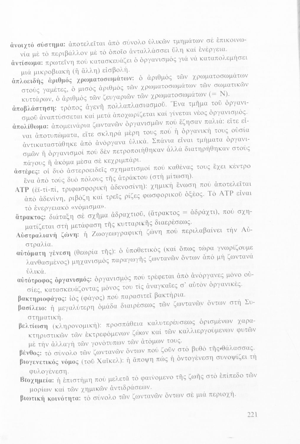 Σχολικό εγχειρίδιο Βιολογίας ΣΤ΄ Γυμνασίου που εστιάζει στις συνθήκες γέννησης, μεταβολής και θανάτου των έμβιων οργανισμών. Φέρει το σύμβολο της δικτατορίας. Ο συγγραφέας ήταν υφηγητής του Πανεπιστημίου ...