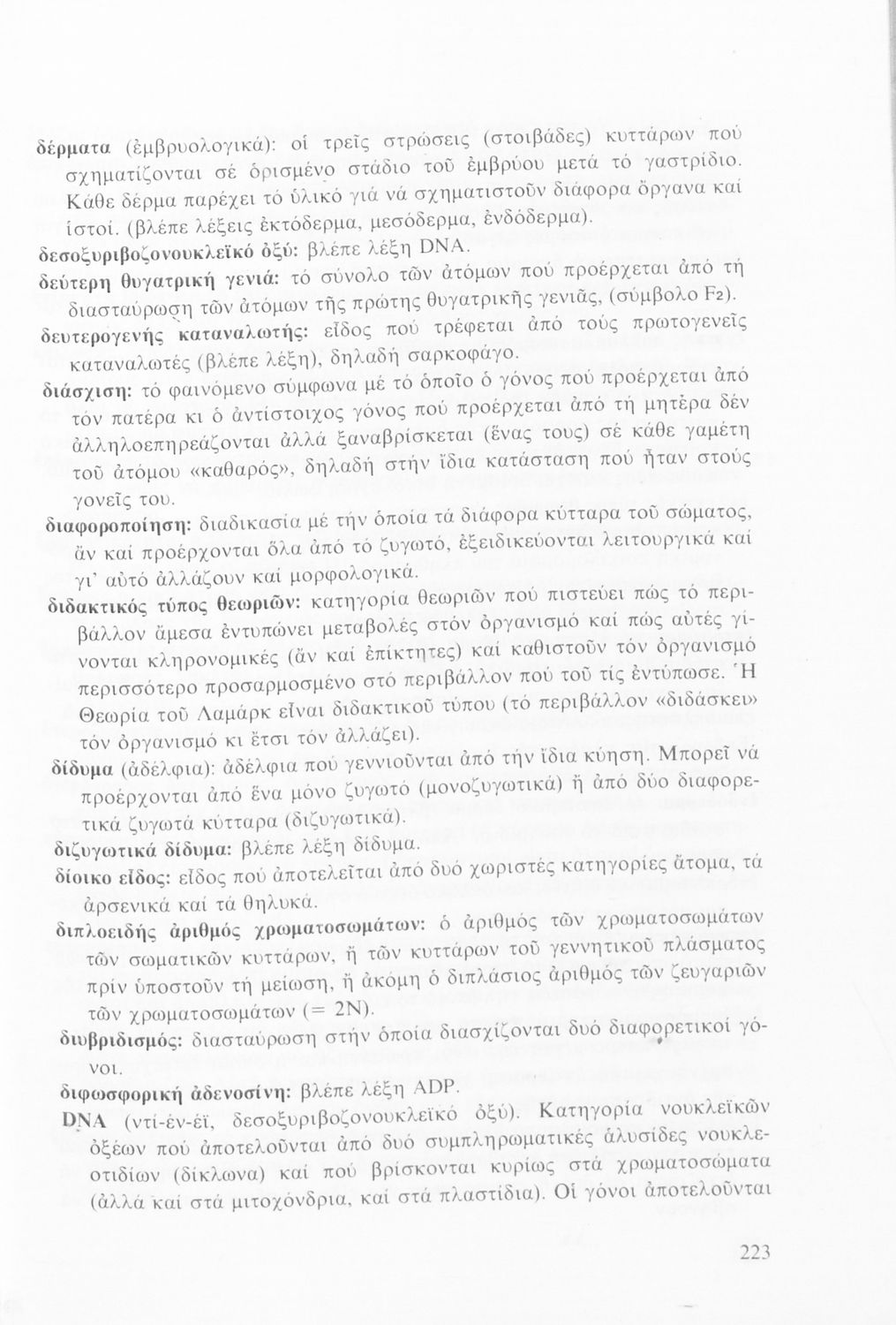 Σχολικό εγχειρίδιο Βιολογίας Γ΄ Γυμνασίου που εστιάζει στις συνθήκες γέννησης, μεταβολής και θανάτου των έμβιων οργανισμών. Φέρει το σύμβολο της δικτατορίας.