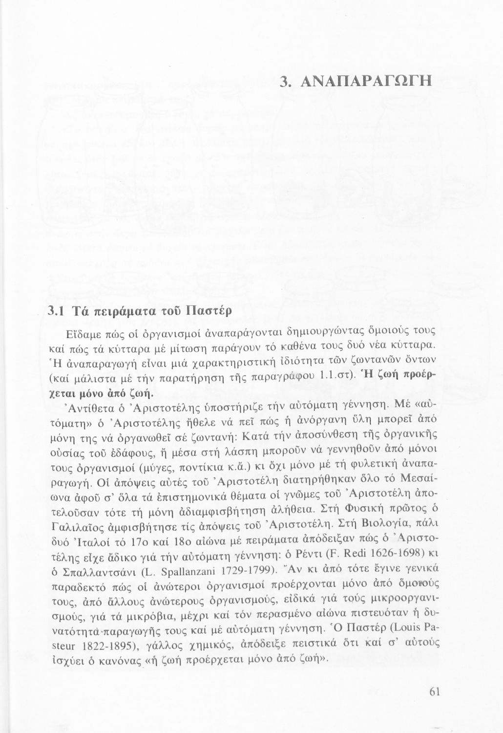 Σχολικό εγχειρίδιο Βιολογίας Γ΄ Λυκείου που πραγματεύεται α) την λειτουργία των έμβιων όντων και ειδικότερα του κυττάρου και β) την αναπαραγωγή και την τελεονομία.