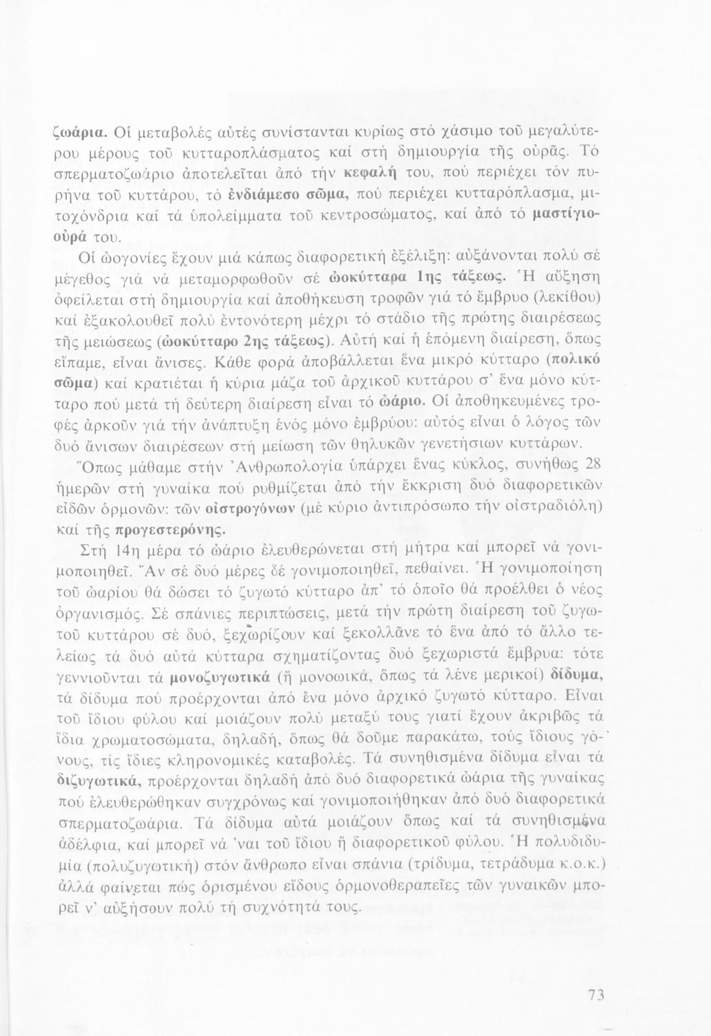 Βαθμίδα εκπαίδευσης: Δευτεροβάθμια Τάξη: Γ' Λυκείου Μάθημα: Βιολογία Γλώσσα: Δημοτική Παρουσίαση περιεχομένου: Σχολικό εγχειρίδιο Βιολογίας Γ΄ Λυκείου που πραγματεύεται α) την λειτουργία των έμβιων όντων και ειδικότερα του κυττάρου και β) την αναπαραγωγή και την τελεονομία. |