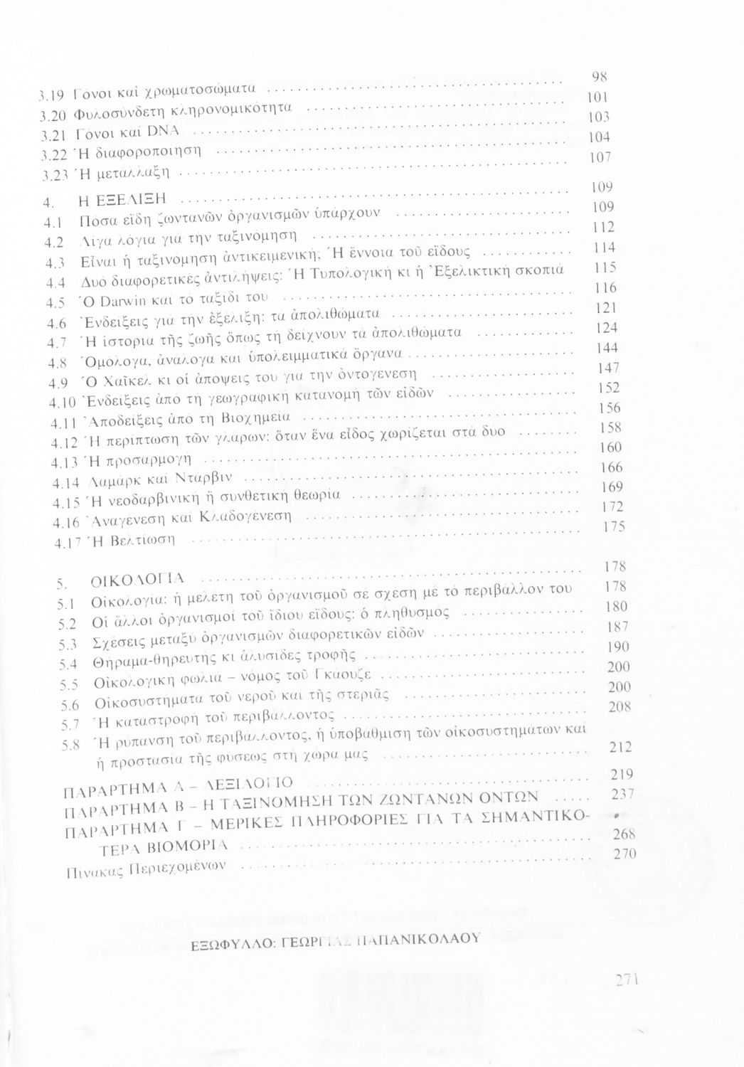 Σχολικό εγχειρίδιο Βιολογίας ΣΤ΄ Γυμνασίου που εστιάζει στις συνθήκες γέννησης, μεταβολής και θανάτου των έμβιων οργανισμών. Ο συγγραφέας ήταν υφηγητής του Πανεπιστημίου Αθηνών.