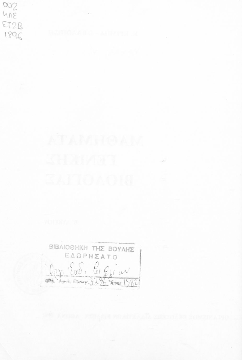 LDR 01273 2200217 4500 035 ## _a03-20557997 040 ## _aΒιβλιοθήκη της Βουλής των Ελλήνων 041 ## _ael 100 ## _aΚ. Κριμπάς _aΙ. Καλοπίσης 110 ## _a20557997 245 0# _aΜαθήματα Γενικής Βιολογίας Β' Λυκείου 250 ## _a6η Έκδοση 260 ## _aΑθήνα _bΟργανισμός Εκδόσεως Διδακτικών Βιβλίων _c1982 300 ## _a272 _bΕικόνες, σκίτσα (έγχρωμα) 520 ## _aΣχολικό εγχειρίδιο Βιολογίας Β' Λυκείου που εστιάζει σε ζητήματα αναπαραγωγής, γονιμοποίησης, κληρονομικότητας και εξέλιξης. Περιέχει και ζητήματα οικοσυστημάτων. 521 ## _aΒ' Λυκείου 522 ## _aΕλλάδα 546 ## _aΔημοτική 563 ## _aΜαλακό Εξώφυλλο 583 ## _a3775/5-4-1982 _c1982 650 #4 _aΑναπνοή _aΑνόργανα σώματα _aΒιολογία _aΔαρβινισμός _aΌργανα _aΟργανισμοί _aΠεριβάλλον _aΠολλαπλασιασμός _aΠρωτεΐνες _aΦωτοσύνθεση